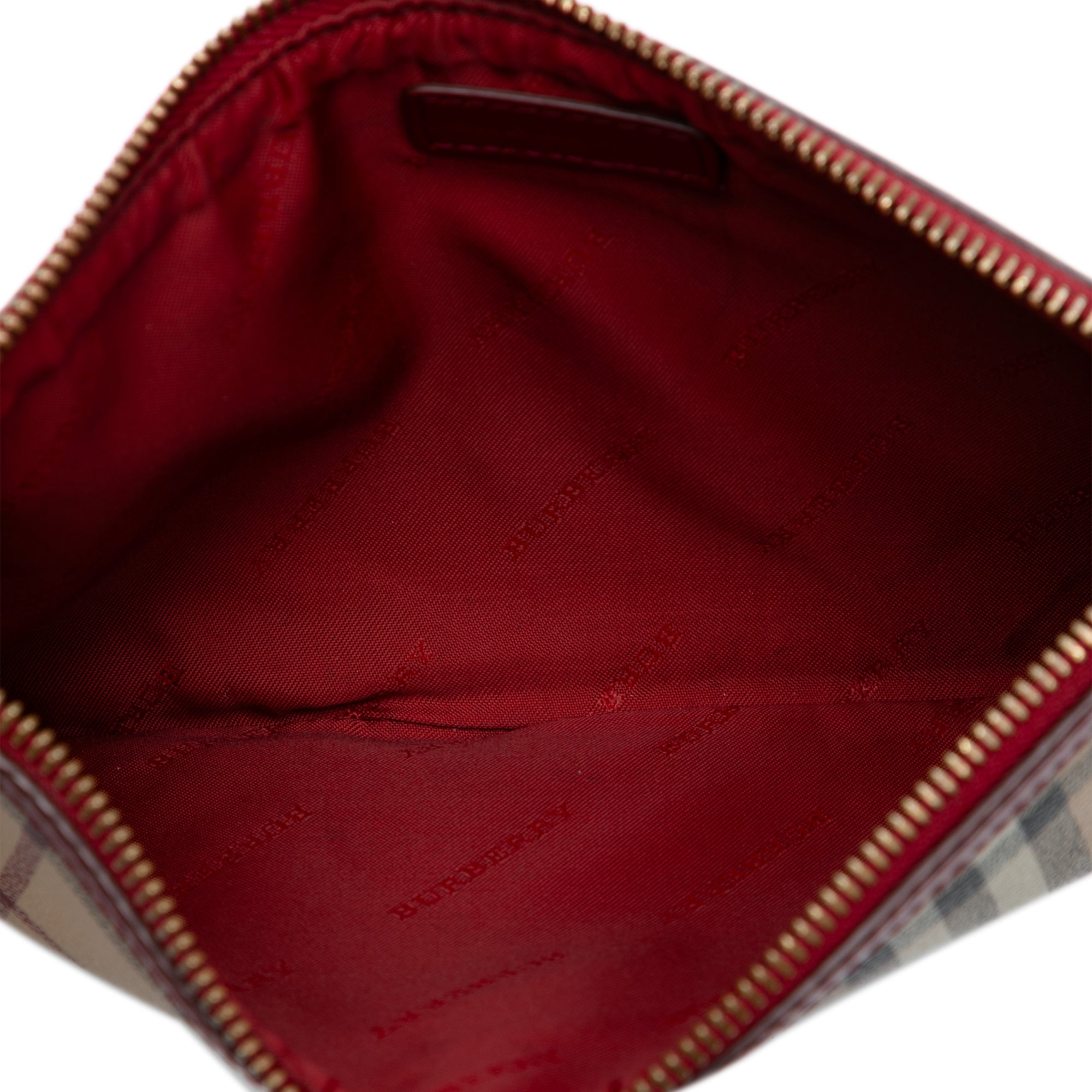 This crossbody features a haymarket check coated canvas body with leather trim, a detachable flat leather strap, and a top zip closure.