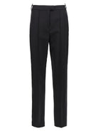 The refined design includes a zip and hook-and-over closure for a secure fit, while central stitching down the leg creates a sleek, elongating effect. Perfect for the office or elevated casual occasions, these versatile black pants can be styled with everything from crisp button-downs to relaxed knits.
