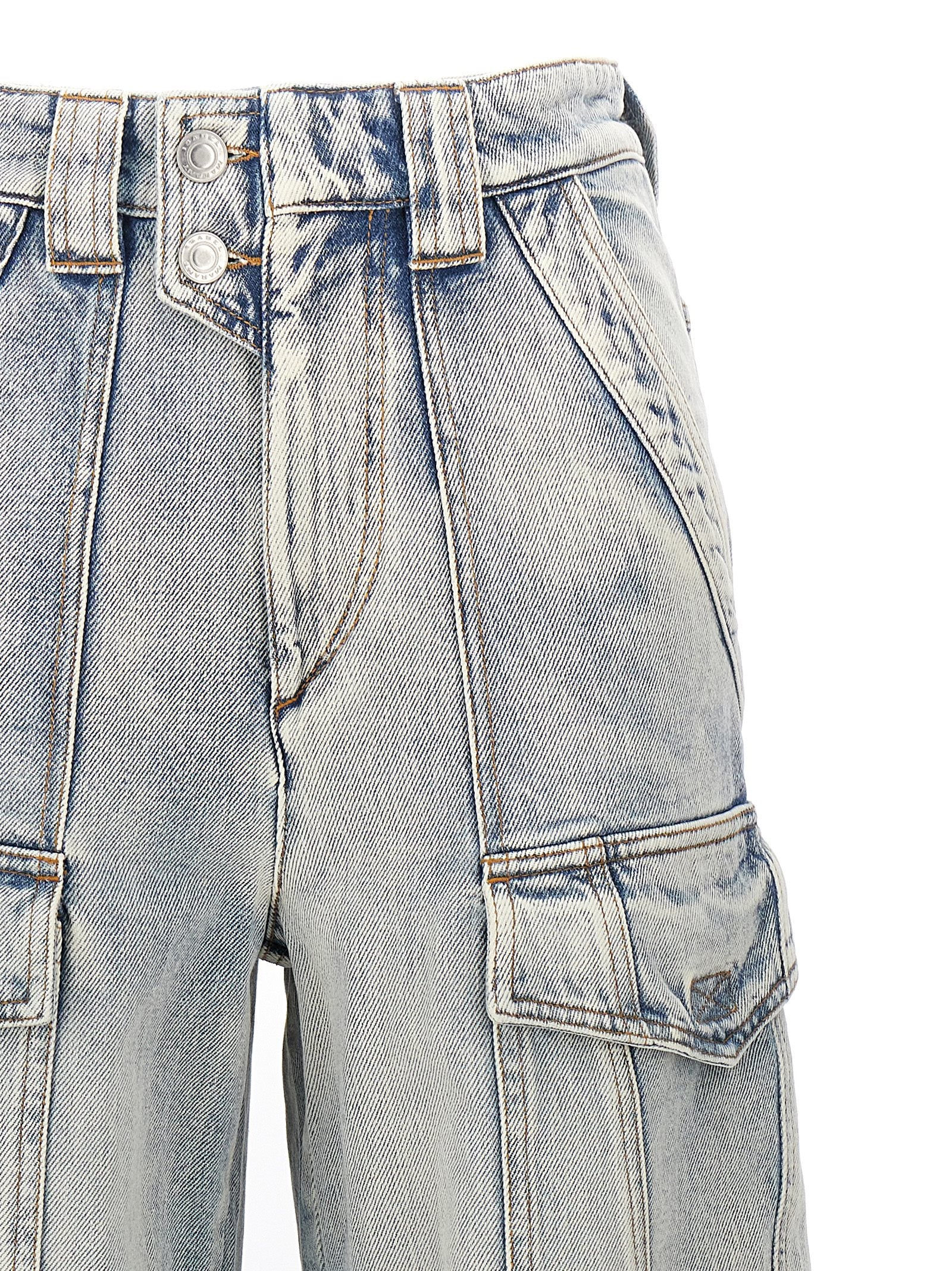 Introducing the 'Heilani' jeans from MARANT ETOILE, a contemporary take on classic denim with utilitarian edge. Crafted from premium cotton denim in a light, vintage-inspired wash, these wide-leg jeans feature functional cargo pockets and a flattering high-rise waistband with zip and button closure.