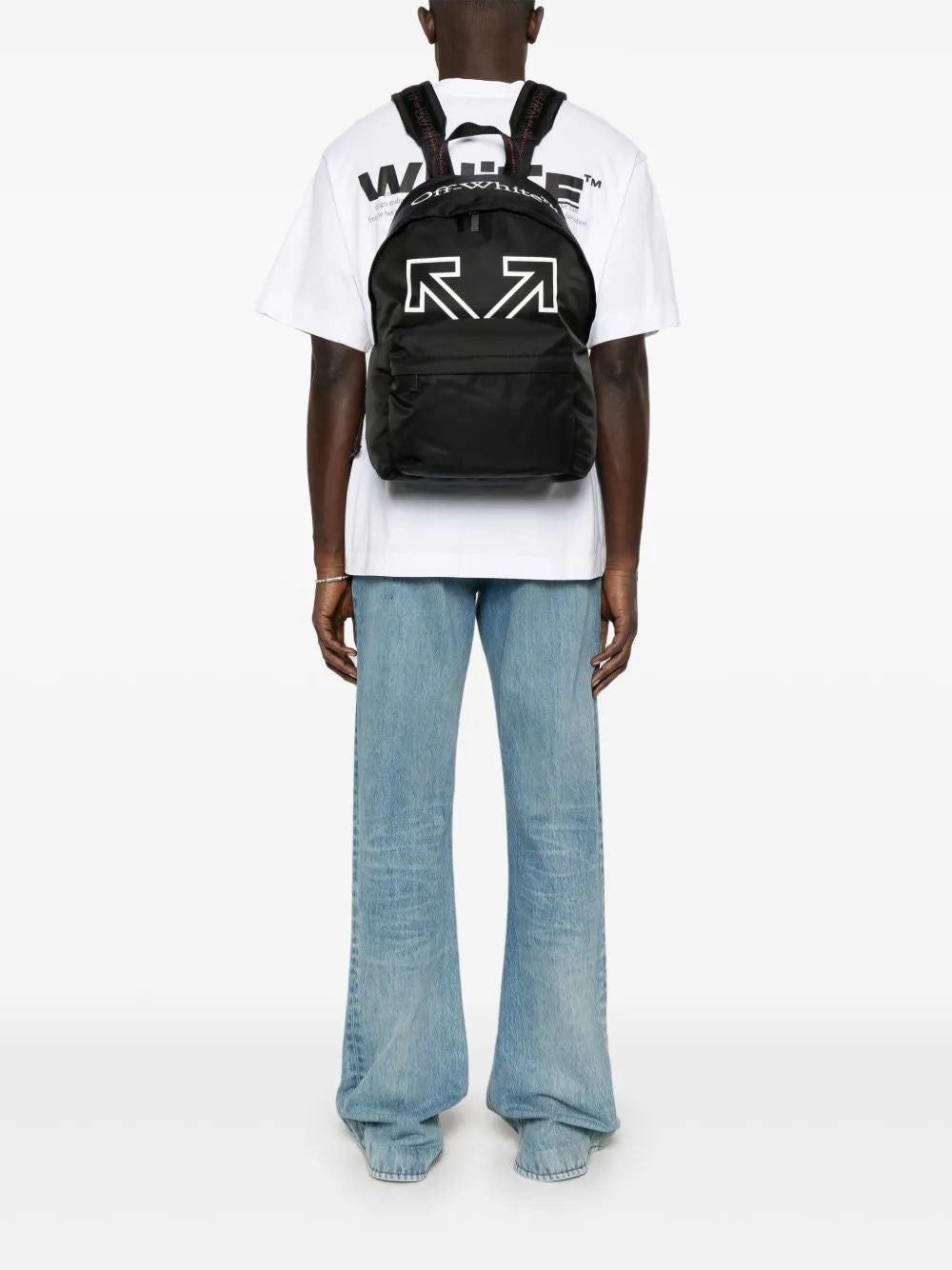 Elevate your everyday carry with the Off-White Heritage Backpack. This sleek black backpack features the brand's iconic arrow logo prominently displayed on the front, making a bold statement wherever you go. Crafted with premium materials and Off-White's signature attention to detail, including branded straps and hardware, this backpack seamlessly blends streetwear edge with functional design.