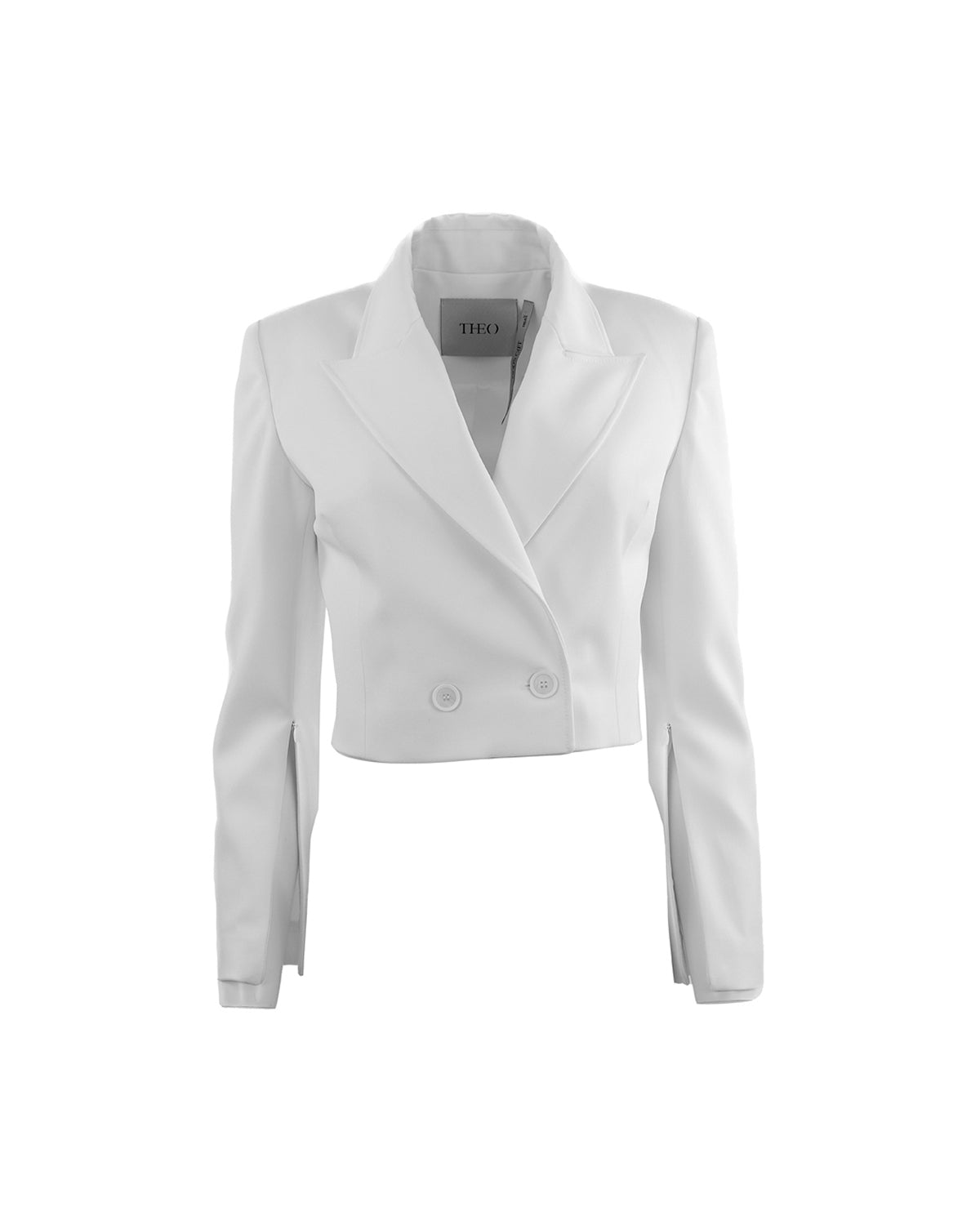Experience sophistication and elegance with the Hestia Cropped Jacket. Boasting a tailored design and zip sleeves, this jacket is tailored for the fashion-forward. Elevate any outfit with a touch of luxury. Embrace the art of style with the Hestia Cropped Jacket.