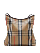BURBERRY HIGHLANDS SHOULDER BAG NEUTRALS SAND BEIGE TOP ZIP FASTENING LONG TOP HANDLE REMOVABLE POUCH VINTAGE CHECK PATTERN CALF LEATHER COTTON VISCOSE LINEN FLAX COTTON SHOULDER BAGS BAGS WOMEN
