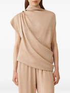 FABIANA FILIPPI DRAPED HIGH-NECK BLOUSE NEUTRALS VISCOSE/ACETATE BLOUSES TOPS CLOTHING WOMEN