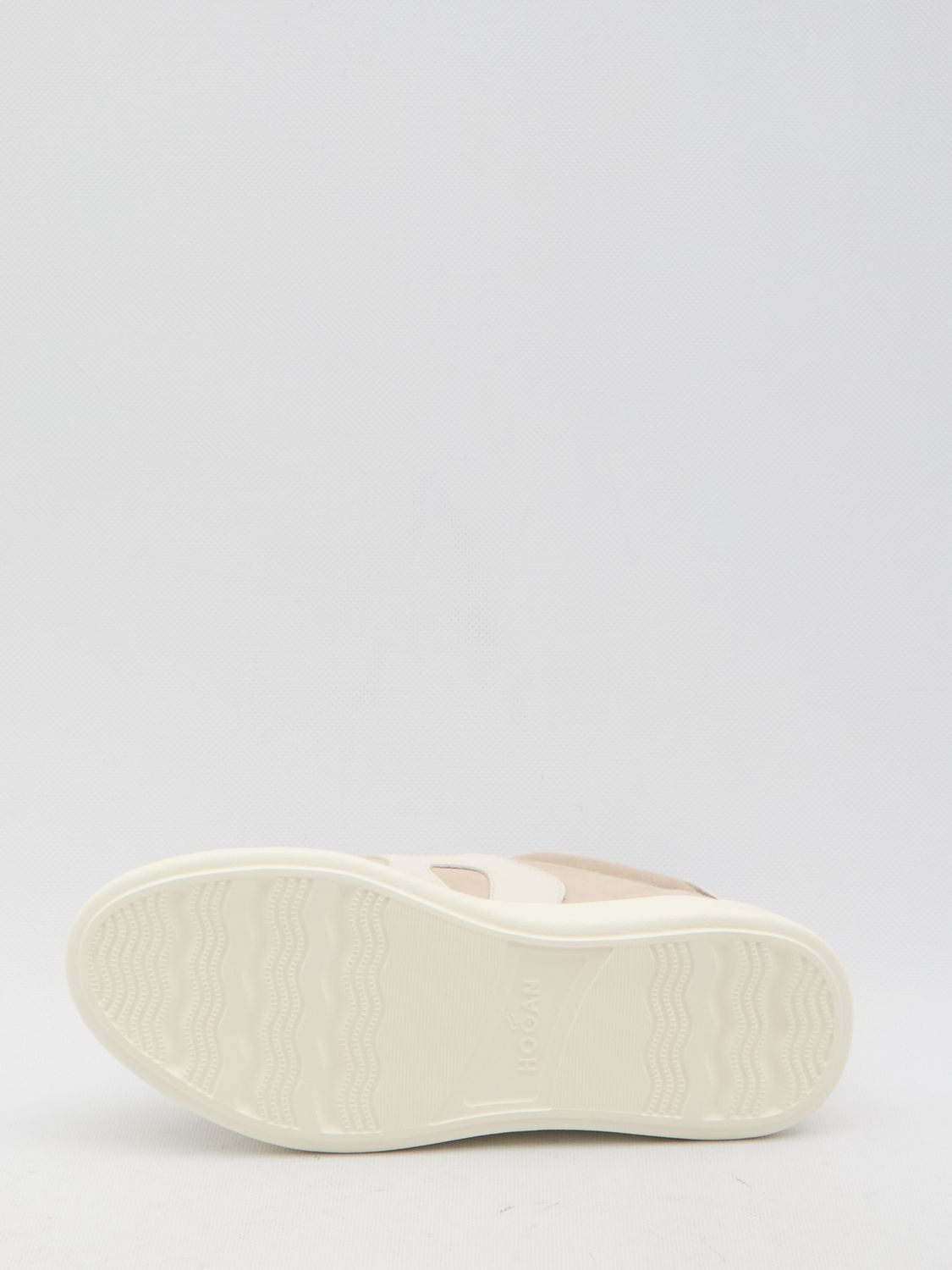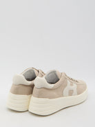 HOGAN REBEL SNEAKERS IN BEIGE SUEDE. THEY FEATURE A LACE-UP CLOSURE, A WAVY WHITE LEATHER "H" DETAIL ON THE SIDES, A LOGO ON THE TONGUE, A WHITE LEATHER DETAIL AT THE BACK, A MEMORY FOAM INSOLE, AND A RUBBER SOLE WITH GROOVES AT THE BACK. A DUST BAG IS INCLUDED. ADDITIONAL LACES ARE ALSO INCLUDED. ANY IMPERFECTIONS IN THE LEATHER SHOULD NOT BE CONSIDERED MANUFACTURING DEFECTS, BUT RATHER A CHARACTERISTIC OF THE MATERIAL.