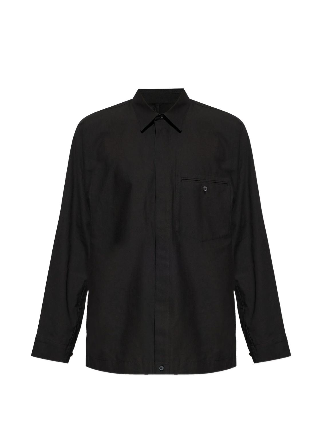 The streamlined silhouette is enhanced by a functional chest pocket and classic shirt collar, creating a versatile piece that transitions effortlessly from office to evening. The long sleeves and refined tailoring make this shirt an ideal layering piece or standalone statement.