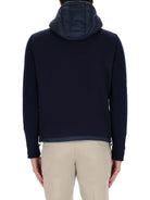 The unique construction blends technical outerwear elements with knitwear comfort, making it an essential layering piece for the modern man's wardrobe. Style it with casual chinos and sneakers for an effortlessly cool off-duty look.