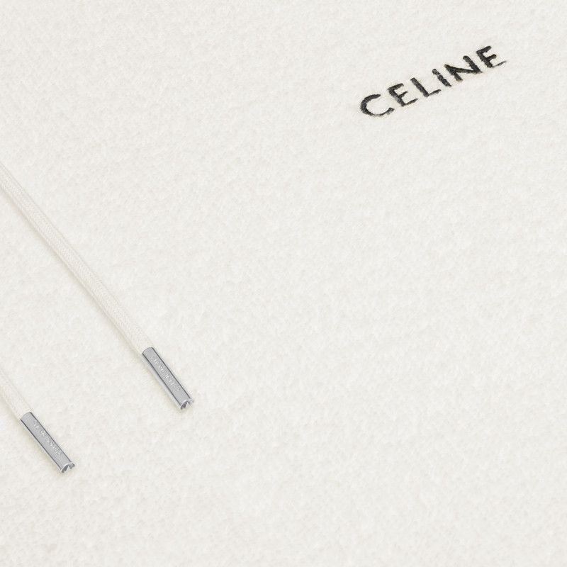 Elevate your casual wardrobe with this luxurious loose-fit hoodie from Celine. Crafted in a pristine cream colorway, this relaxed pullover features the iconic Celine logo embroidered at the chest, adding a touch of understated luxury to your everyday style.