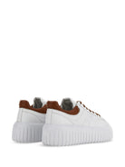 A NEW MODEL WITH SPORTY AND VERSATILE LINES, THE H-STRIPES TRAINER FEATURES AN EXTRA-LIGHT SOLE WITH VERTICAL STRIPES AND WAVES ON THE TREAD. THE UPPER, WITH A COMPACT AND BALANCED DESIGN, IS DISTINGUISHED BY AN H THAT EXTENDS ACROSS THE ENTIRE SIDE. THE UPPER, WITH STITCHING ON THE HEEL, HAS SOFT PADDING. THESE TRAINERS ARE MADE OF NAPPA LEATHER, WITH A MEMORY FOAM FOOTBED THAT PROVIDES CUSHIONING. - MADE IN ITALY - LATERAL H - 8 MM MEMORY FOAM FOOTBED - EVA SOLE - INCLUDES AN ADDITIONAL PAIR OF LACES DESIGNER ID: HXW6450FC60LE90446 SOLE HEIGHT: 6 CM