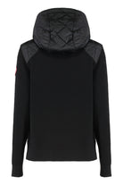 HOODED SWEATER WITH ADJUSTABLE DRAWSTRING FEATURING A QUILTED FRONT. IT HAS A FRONT ZIP CLOSURE AND TWO SIDE POCKETS WITH ZIPS.