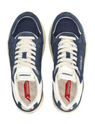 Introducing the HYPERWAY sneakers from Autry, a perfect blend of retro-inspired design and contemporary comfort. These navy blue low-top sneakers feature premium suede and mesh construction with signature Autry branding, creating an effortlessly cool aesthetic.