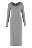 MIDI DRESS WITH LONG SLEEVES, CHARACTERIZED BY A FITTED SILHOUETTE AND SLIM FIT. IT FEATURES A SIMPLE YET REFINED DESIGN, MADE FROM A GRAY MILANO POINT FABRIC. THE NECKLINE IS ROUND, ADDING A TOUCH OF ELEGANCE. THIS DRESS IS IDEAL FOR FORMAL OCCASIONS OR FOR A DAILY CASUAL-CHIC LOOK. PERFECT TO PAIR WITH ACCESSORIES FOR A VERSATILE LOOK.