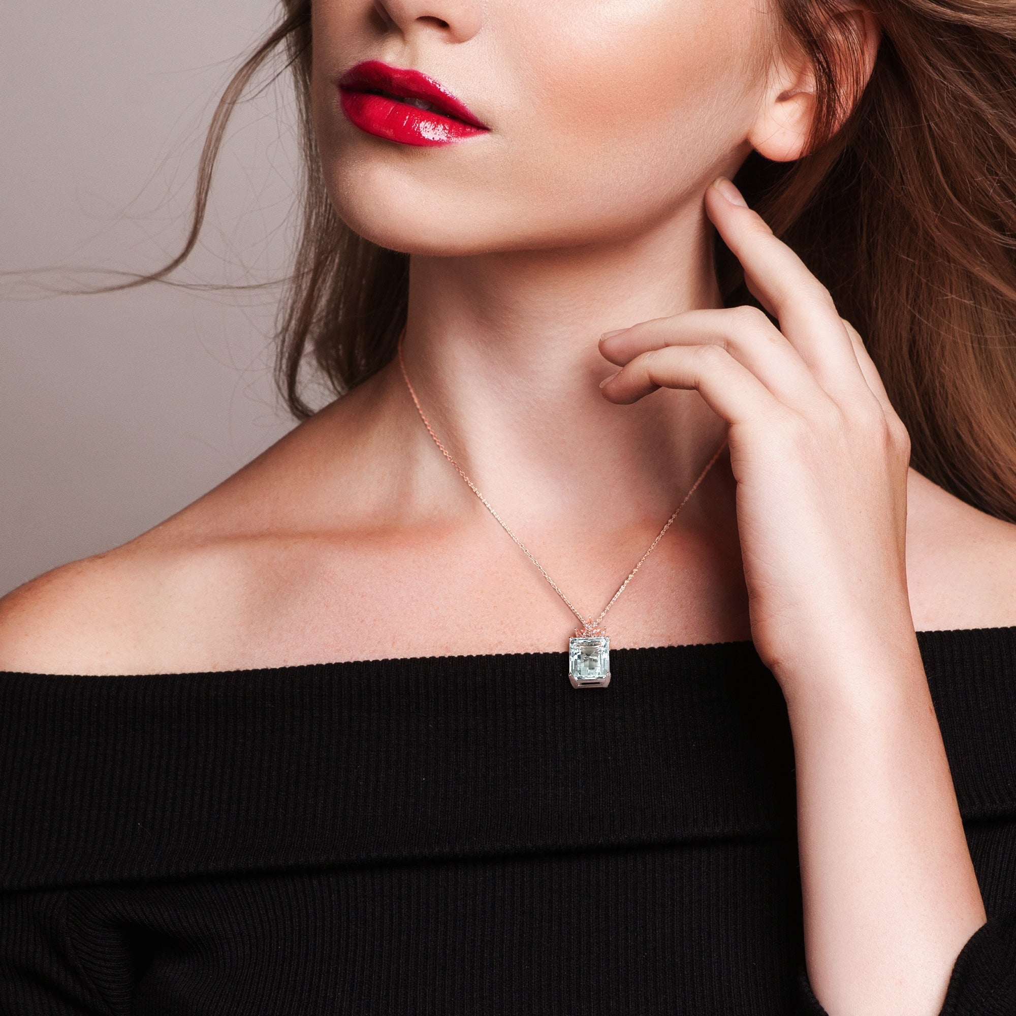 This bold and bright aquamarine and morganite floral crown necklace is crafted in lustrous rose plated sterling silver and features an octagon-cut ice aquamarine at its center with three pear-cut morganite stones in a brilliant floral drop design. Inspired by pastel tones blended with elegance and shine, instantly add a touch of elegance and class to any look with this stunning gemstone necklace.