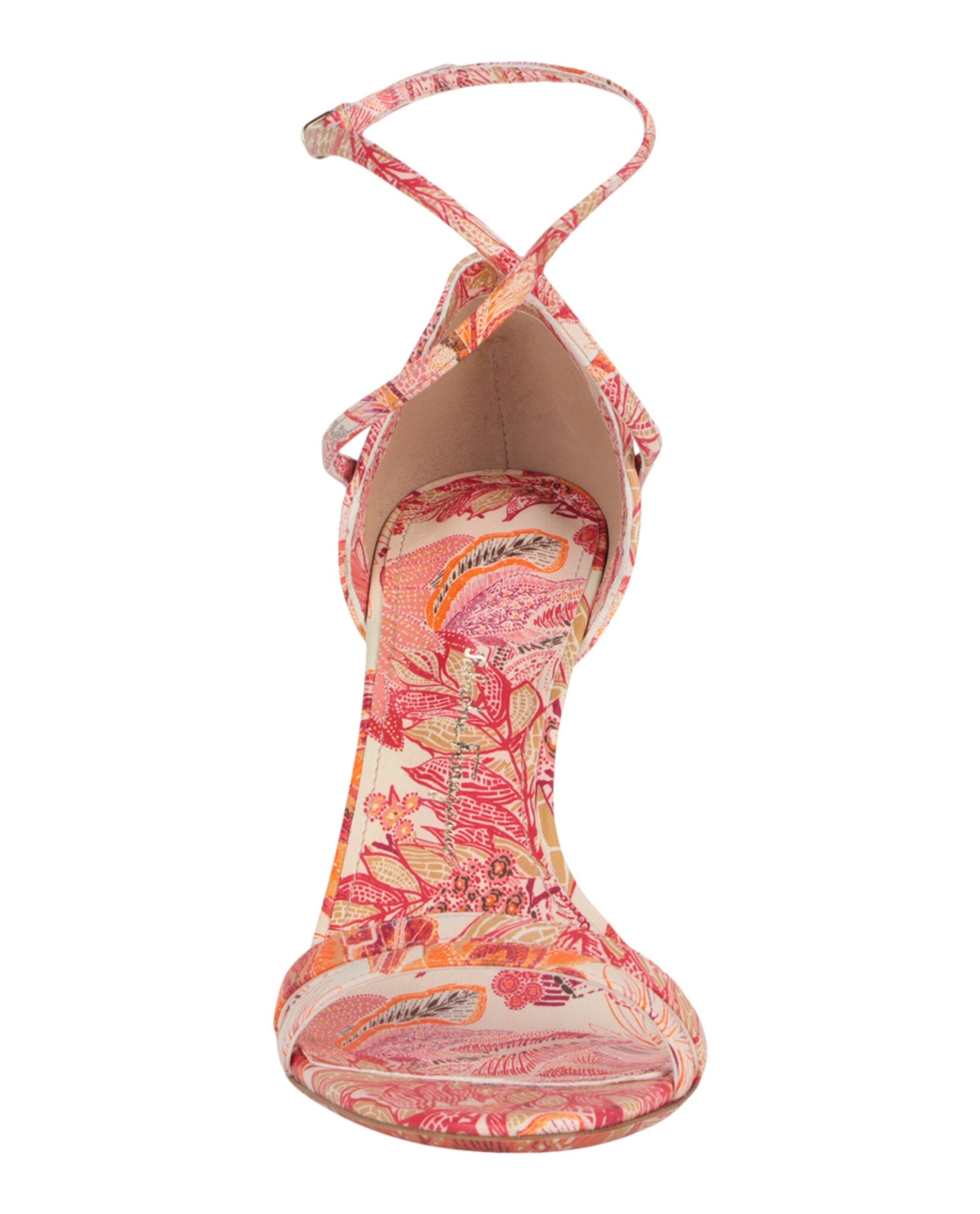 Elevate your evening ensemble with the Ines X5 Strappy Sandals from Ferragamo. These stunning heeled sandals feature an allover botanical print on luxurious calfskin leather, creating a sophisticated and feminine aesthetic that's perfect for special occasions.
