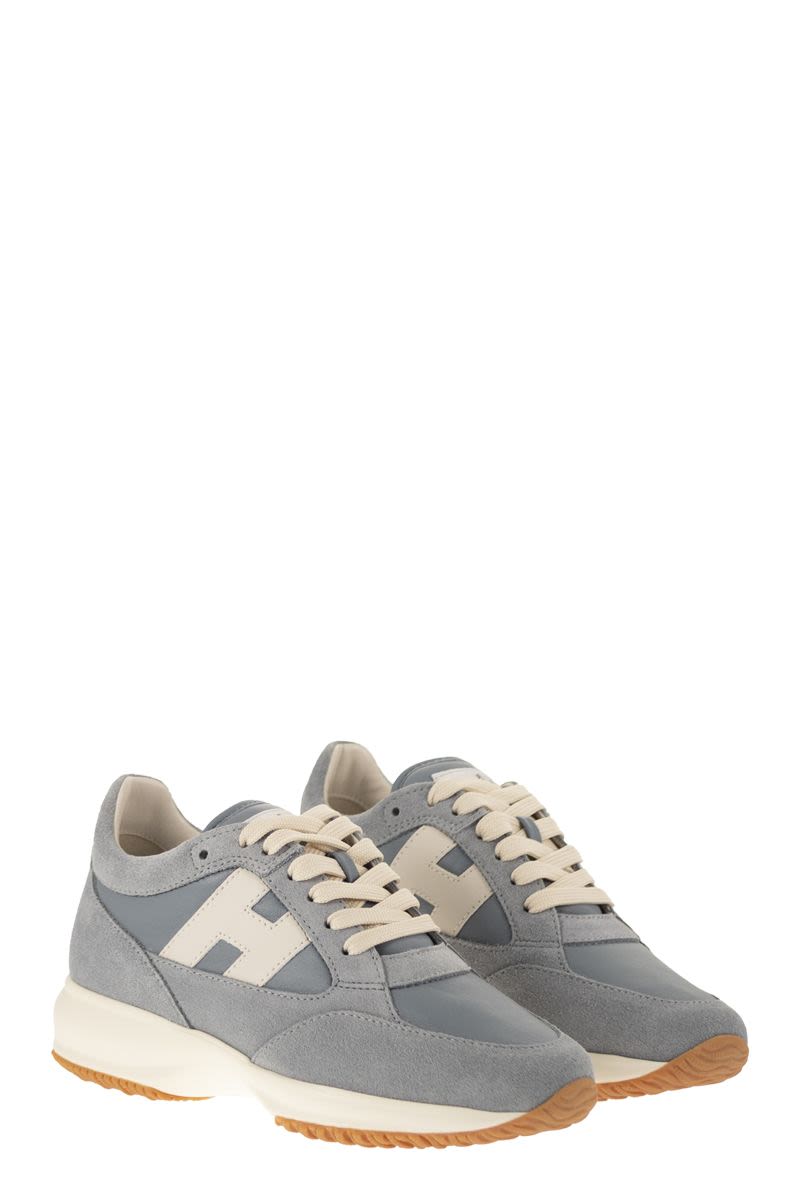HOGAN INTERACTIVE IS A TIMELESS ICON, THE ULTIMATE EXPRESSION OF FUNCTIONAL, CONTEMPORARY LUXURY SINCE 1997. CHARACTERISED BY AN ELEGANT DESIGN AND A LIGHTWEIGHT SOLE THAT ENSURES ELEVATION AND MOMENTUM, THESE SUEDE AND NAPPA LEATHER TRAINERS FEATURE A SMOOTH LEATHER H ON THE SIDE. PERFECT FOR A SPORTY CHIC LOOK, THEY ARE COMPLETED BY A MEMORY FOAM INSOLE. - MADE IN ITALY - SUEDE UPPER - NAPPA LEATHER INSERTS - SMOOTH LEATHER H ON THE SIDE - 8 MM MEMORY FOAM INSOLE - RUBBER SOLE - FABRIC BAG INCLUDED - INCLUDES AN EXTRA PAIR OF LACES DESIGNER ID: HXW7130GC60UHC0RVL TOTAL HEIGHT: 5.7 CM