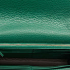 Elevate your everyday elegance with this stunning Gucci Interlocking G Dollar Calfskin Wallet on Chain. Crafted from luxurious calfskin leather in a rich green hue, this versatile piece features the iconic interlocking G hardware that epitomizes timeless Italian craftsmanship.