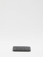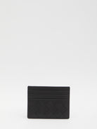 Black calf leather card holder. Features six card slots and one open pocket. Any imperfections in the leather are not to be considered manufacturing defects, but rather a unique characteristic of the material.