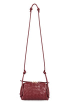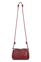 Elevate your evening ensemble with the Bottega Veneta Intrecciato Concert Pouch, a masterpiece of Italian craftsmanship. This luxurious crossbody bag features the house's iconic intrecciato woven leather motif in rich burgundy, crafted from 100% calf leather with a sumptuous leather lining.