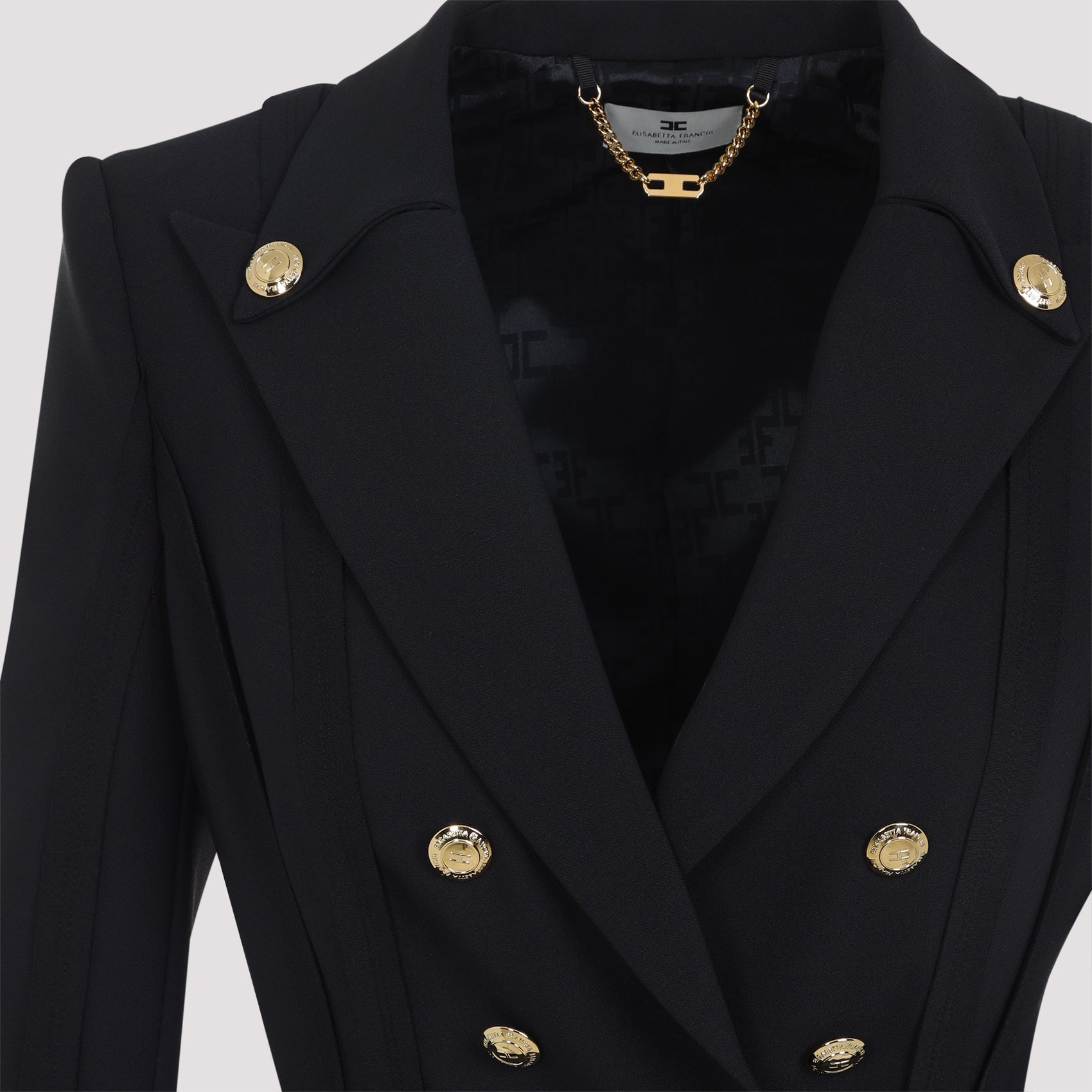 This sophisticated double-breasted blazer by Elisabetta Franchi is the epitome of polished elegance. Crafted from a premium polyester blend with a touch of elastane for comfort and flexibility, this structured jacket features gleaming gold-tone buttons and refined tailoring that creates a flattering silhouette. The 3/4 length sleeves and classic lapel collar add timeless appeal, making it perfect for the office or elevated evening occasions.