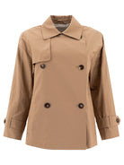 Elevate your outerwear collection with this sophisticated trench jacket from MAX MARA THE CUBE. Crafted in a timeless beige tone, this double-breasted design features a classic collar, long sleeves with button cuffs, and a tailored silhouette that exudes effortless elegance.