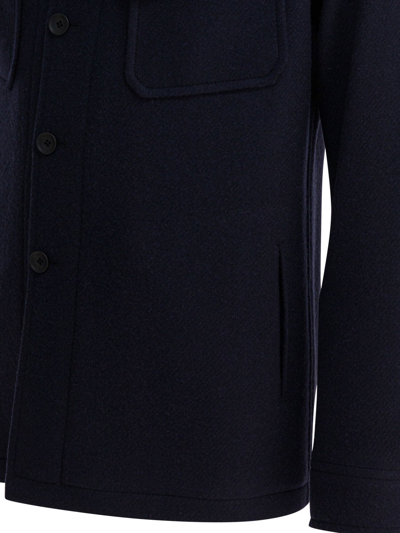 Elevate your outerwear collection with this sophisticated navy jacket from Tagliatore, the renowned Italian house celebrated for impeccable tailoring and refined menswear. This versatile shirt-jacket features a classic button-front closure, dual chest pockets with flaps, and a structured collar that bridges the gap between casual and polished.