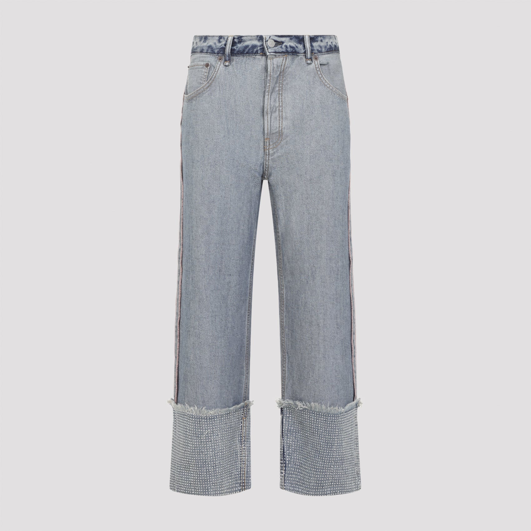 Elevate your denim collection with these distinctive jeans from ACNE STUDIOS. Crafted from a premium blend of 60% cotton and 40% lyocell, these wide-leg jeans feature a light wash and eye-catching embellished cuffs that add a touch of edge to the relaxed silhouette.