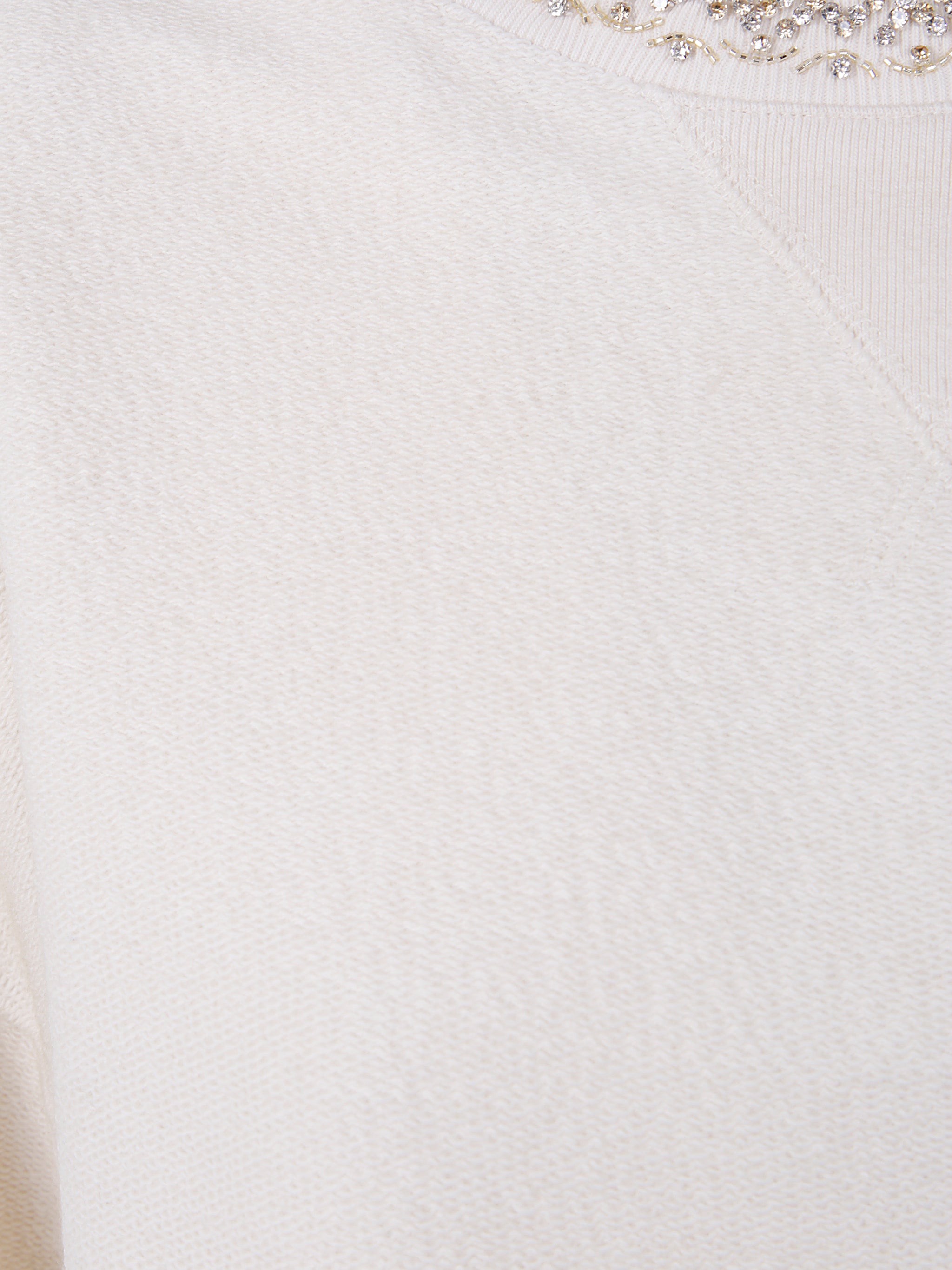 "JOURNEY W`S" CROPPED CREW NECK SWEATSHIRT OVERPRINTED COTTON FLEECE VINTAGE TREATMENT WITH STONES