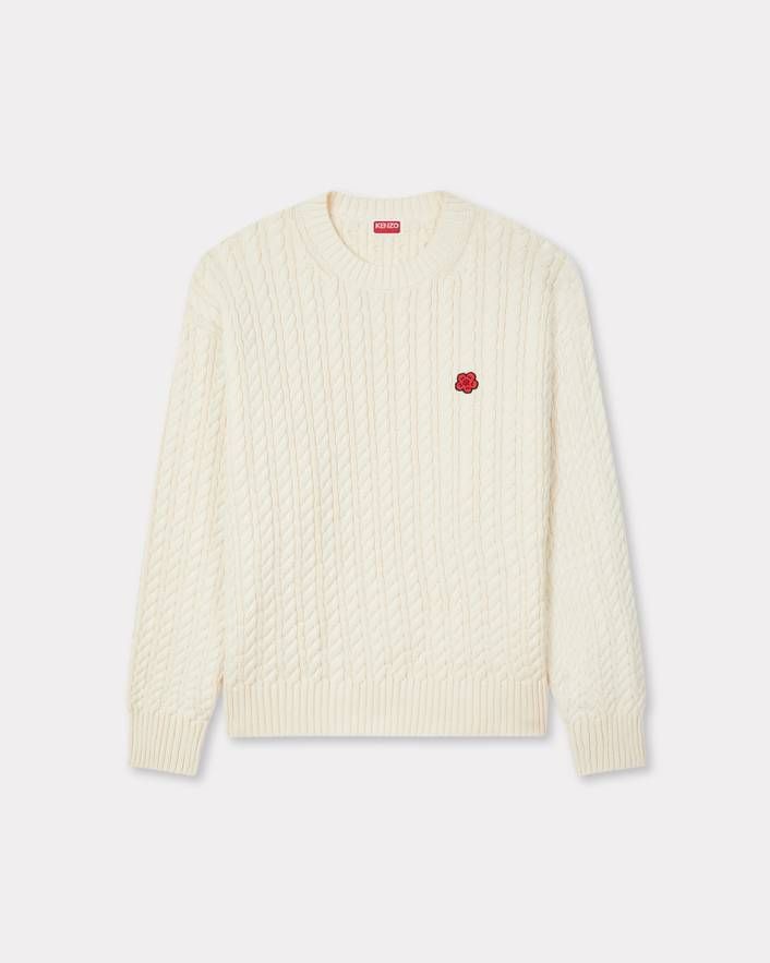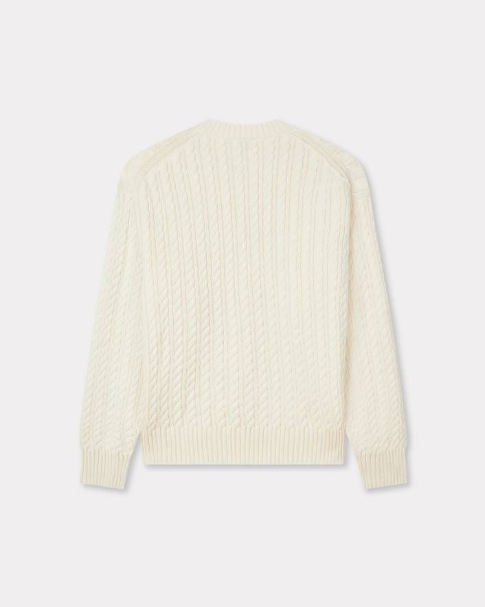 This classic cable knit pullover from Kenzo is a timeless wardrobe essential. Crafted in a luxurious cream tone with intricate cable detailing throughout, this sweater features a crew neckline and long sleeves for effortless comfort.