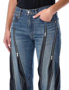 THESE DENIM JEANS BY JUNYA WATANABE ARE A BOLD STATEMENT OF EXPERIMENTAL DESIGN. CRAFTED FROM STURDY COTTON, THEY FEATURE A STRAIGHT-LEG FIT WITH A SUBTLE FLARED HEM AND ARE ENRICHED WITH FULL-LENGTH ZIPPERS THAT ALLOW LAYERING AND STYLING VARIATIONS. COMBINING A WORKWEAR-INSPIRED ATTITUDE WITH AVANT-GARDE AESTHETICS, THEY ARE THE IDEAL PIECE FOR STRIKING URBAN LOOKS WITH A STRONG VISUAL IMPACT.