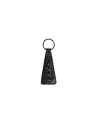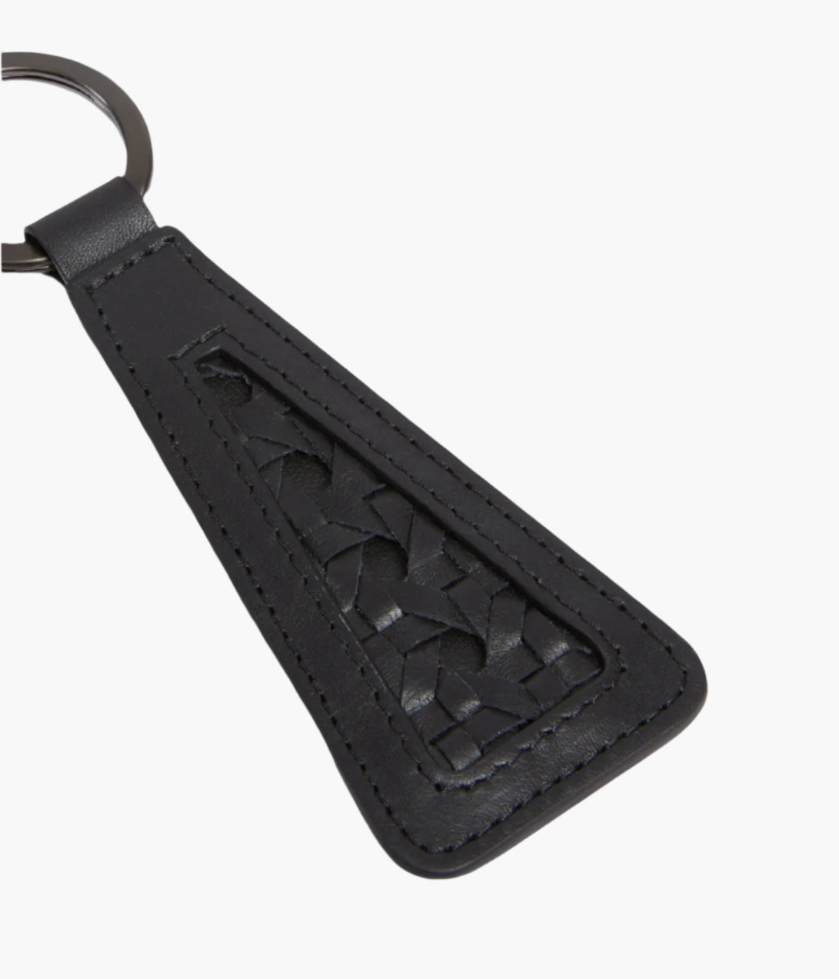 Keyring in calfskin with Paglia di Vienna weave and brass ring in anodized ruthenium.