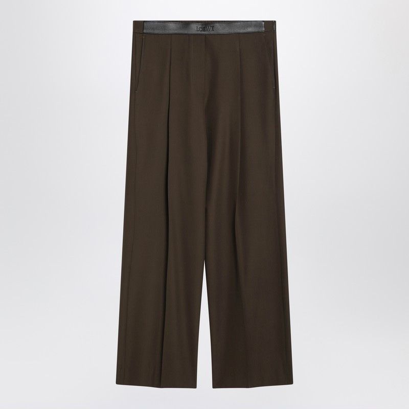 Elevate your wardrobe with these sophisticated Khaki Green Wool Trousers from LOEWE. Crafted from premium wool, these trousers feature a straight, fluid leg with a regular fit that flatters any silhouette.
