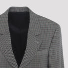 Elevate your tailored wardrobe with this sophisticated wrap blazer from Balenciaga. Crafted from luxurious khaki checkered lyocell, this jacket features a classic notched collar, single-breasted construction with two-button fastening, and a modern drawcord detail at the waist for a customizable silhouette.