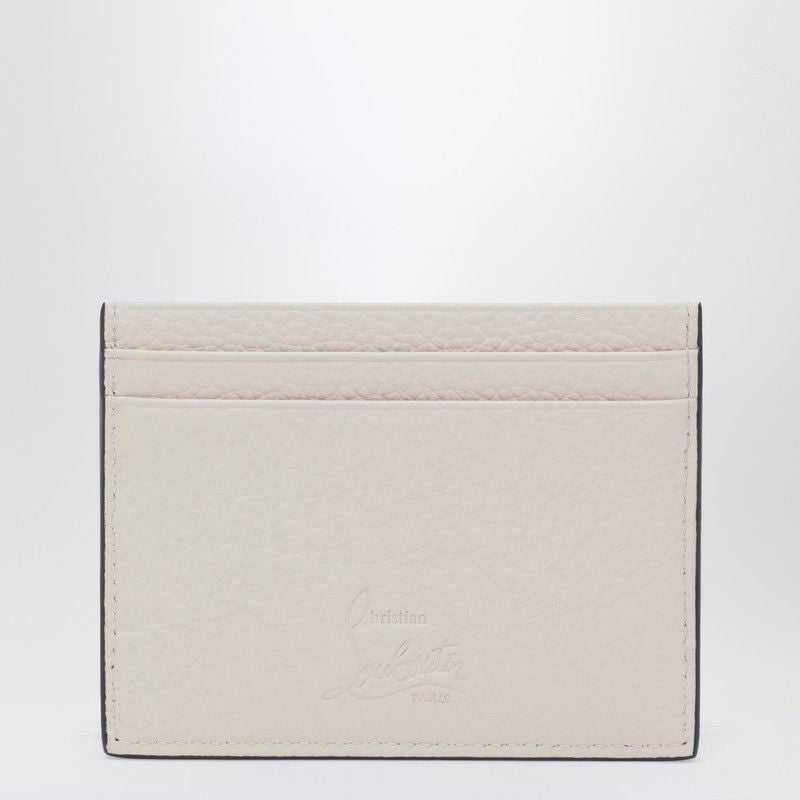 BEIGE GRAINED CALFSKIN CARD HOLDER BY , FEATURES FOUR CARD SLOTS, FLAT POCKET FOR NOTES AND RECEIPTS, FRONT METAL LOGO DETAILS AND SPIKES.