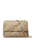TAUPE NAPPA LEATHER FOLDOVER TOP WITH MAGNETIC FASTENING ADJUSTABLE LEATHER AND CHAIN-LINK SHOULDER STRAP DIAMOND QUILTING GOLD-TONE LOGO PLAQUE SIGNATURE DOUBLE T MOTIF PARTITIONED COMPARTMENT INTERNAL ZIP-FASTENING POCKET MULTIPLE INTERNAL SLIP POCKETS INTERNAL LOGO PLAQUE