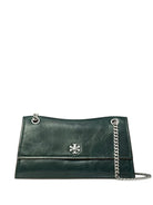 Elevate your everyday style with the Tory Burch Kira Turnlock Shoulder Bag in a sophisticated dark green hue. Crafted from luxurious nappa leather, this elegant shoulder bag features the signature turnlock closure adorned with the iconic Tory Burch logo.