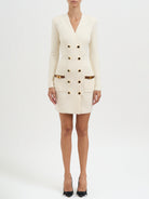 Elevate your wardrobe with this sophisticated Knit Dress with Jewel Decorations from Elisabetta Franchi. This stunning mini dress features a flattering V-neckline and long sleeves with padded shoulders for a structured, powerful silhouette.