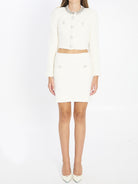 CREAM BOUCLé KNIT MINI SKIRT. FEATURES ELASTICATED WAISTBAND AND TWO FRONT PATCH POCKETS WITH SNAP-BUTTON DETAIL. REGULAR FIT.