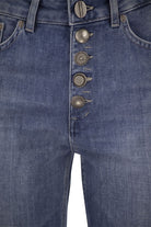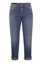 KOONS LOOSE FIT FIVE-POCKET JEANS, PERFECT FOR THOSE WHO LOVE TO PLAY WITH PROPORTIONS AND WITH THE MOST DISPARATE STYLES. THE WAIST GOES DOWN, THE CROTCH IS LOW AND THE LEG IS WIDE AND STRAIGHT. - REGULAR WAIST, JEWELED BUTTON PANEL - EMBROIDERY ON THE EDGE OF THE BELT AND POCKETS AND ANKLE LENGTH - MEDIUM BLU WASH - DONDUP LOGO DESIGNER ID: DP268B DS0145D GU8 DD 800