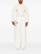 Elevate your everyday wardrobe with the La Veste De-Nimes Denim Jacket from Jacquemus. This chic cropped silhouette features a classic collar, button fastening, and practical flap pockets, all crafted in a sophisticated off-white denim.
