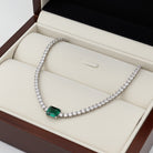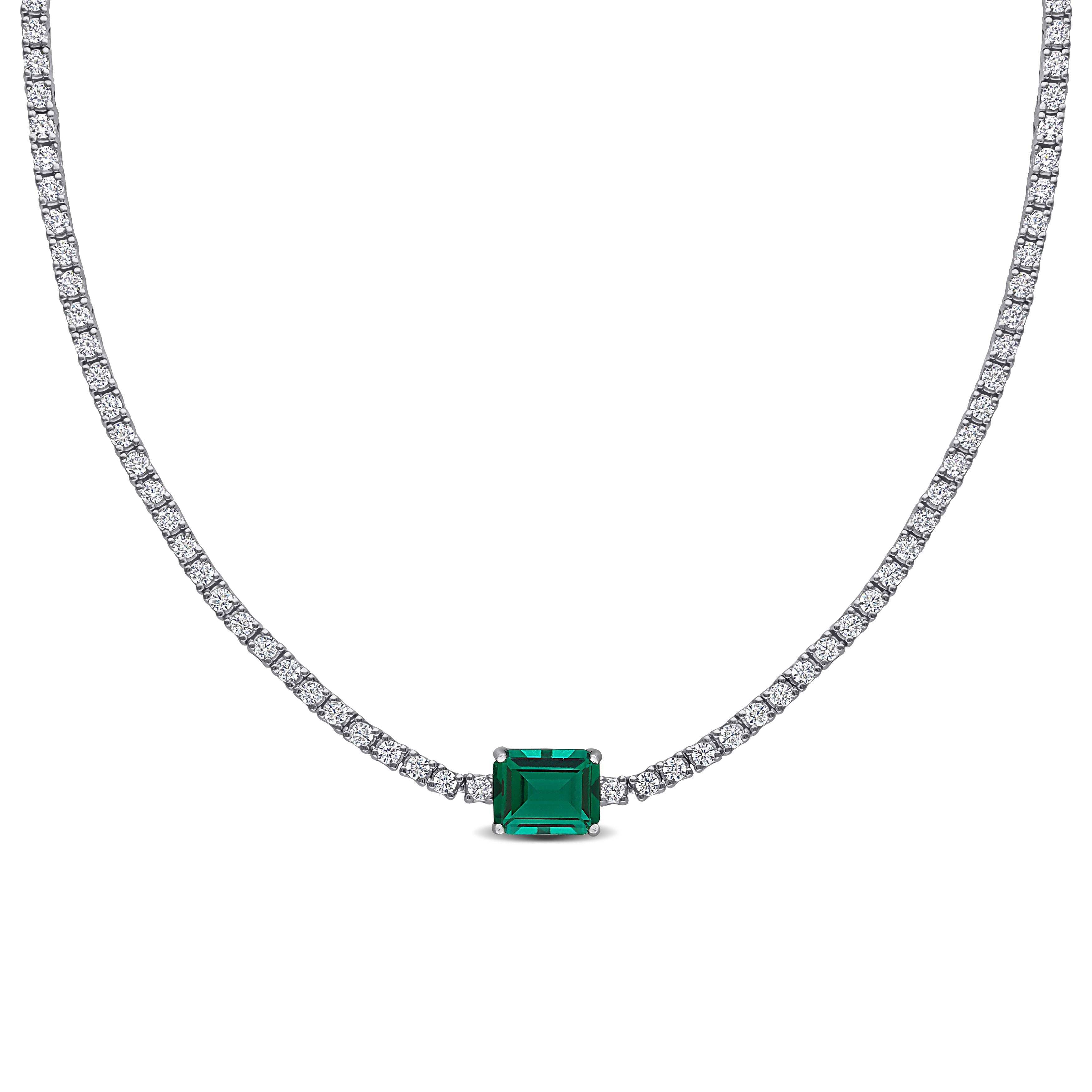 Lab-Created Emerald & White Sapphire Solitaire Tennis Necklace in Sterling Silver