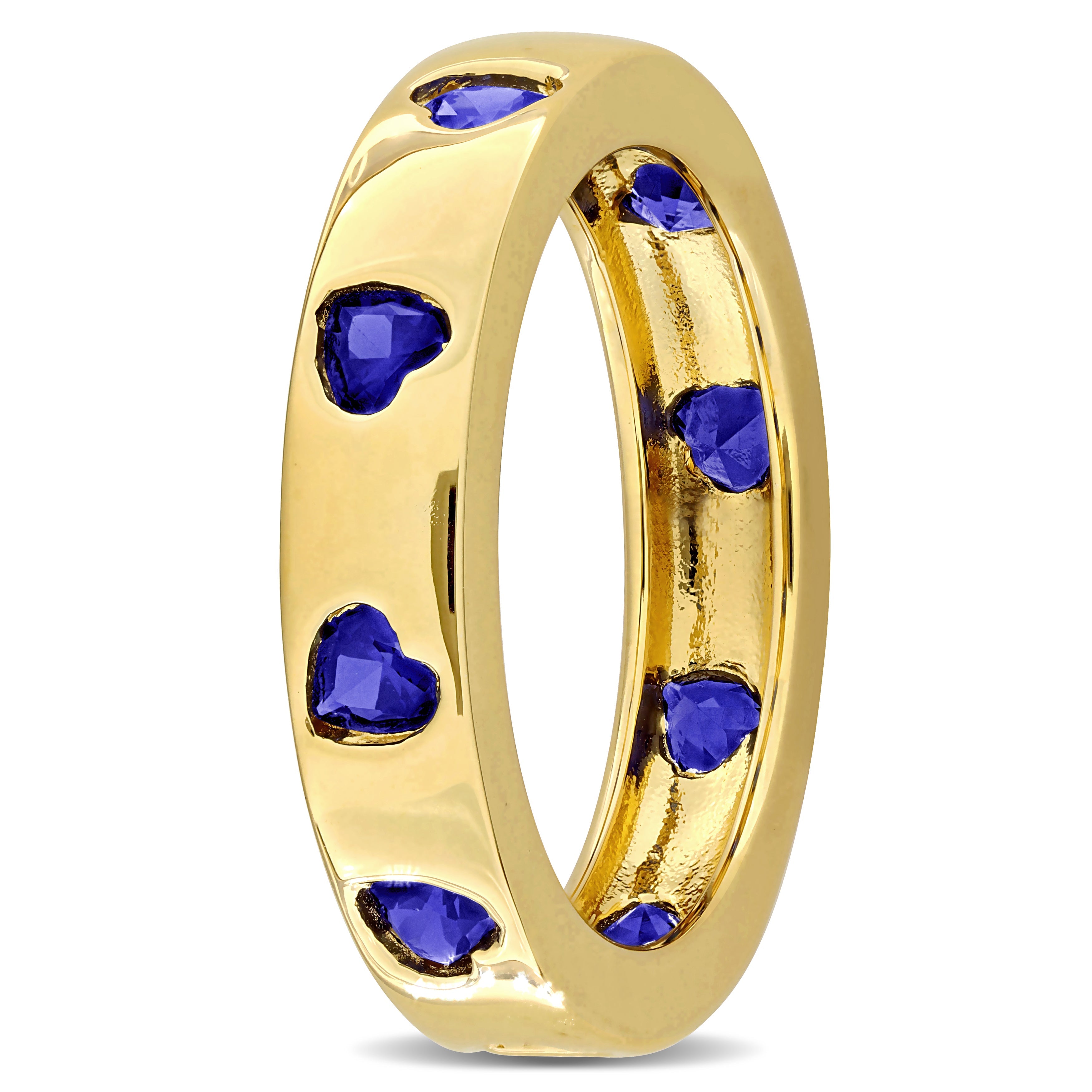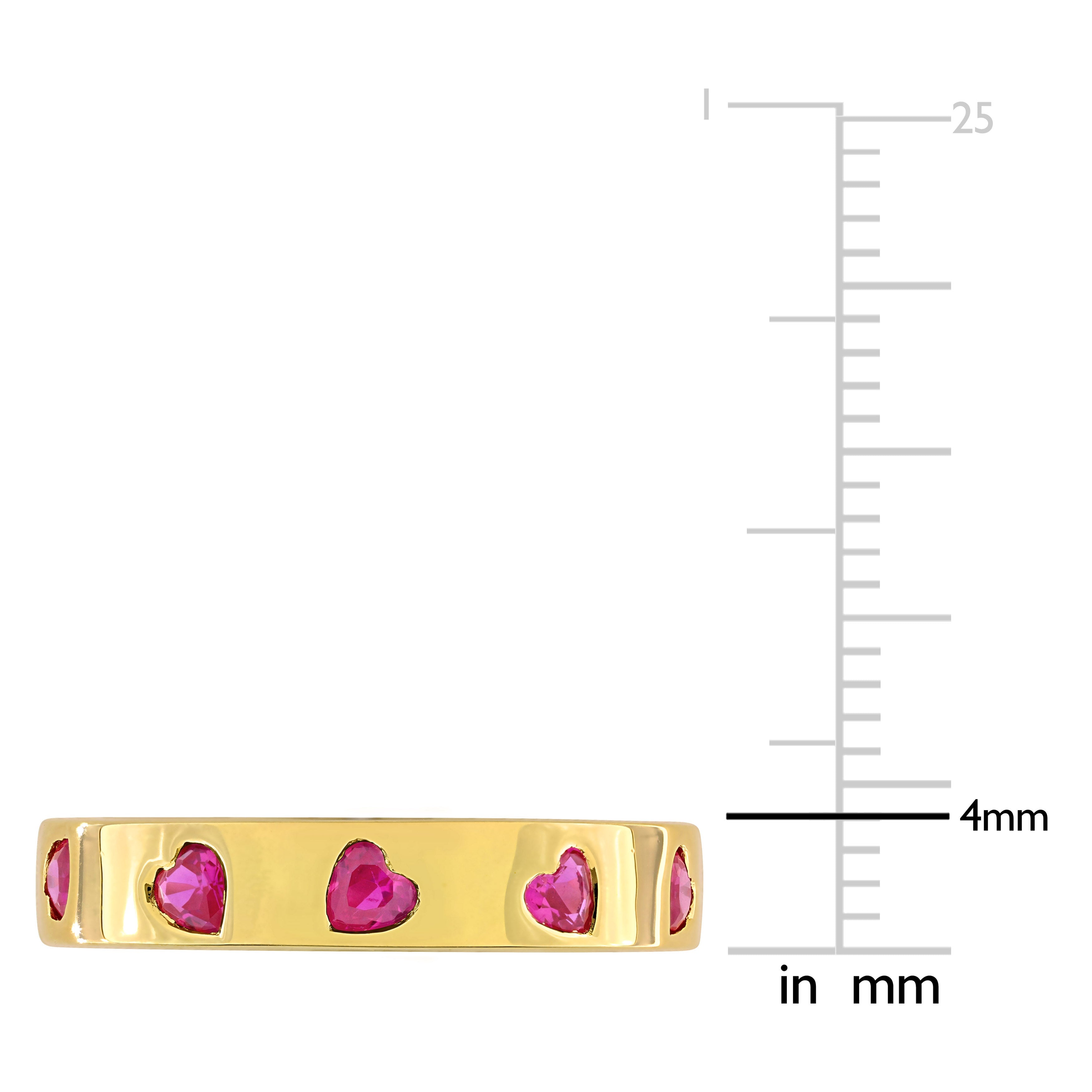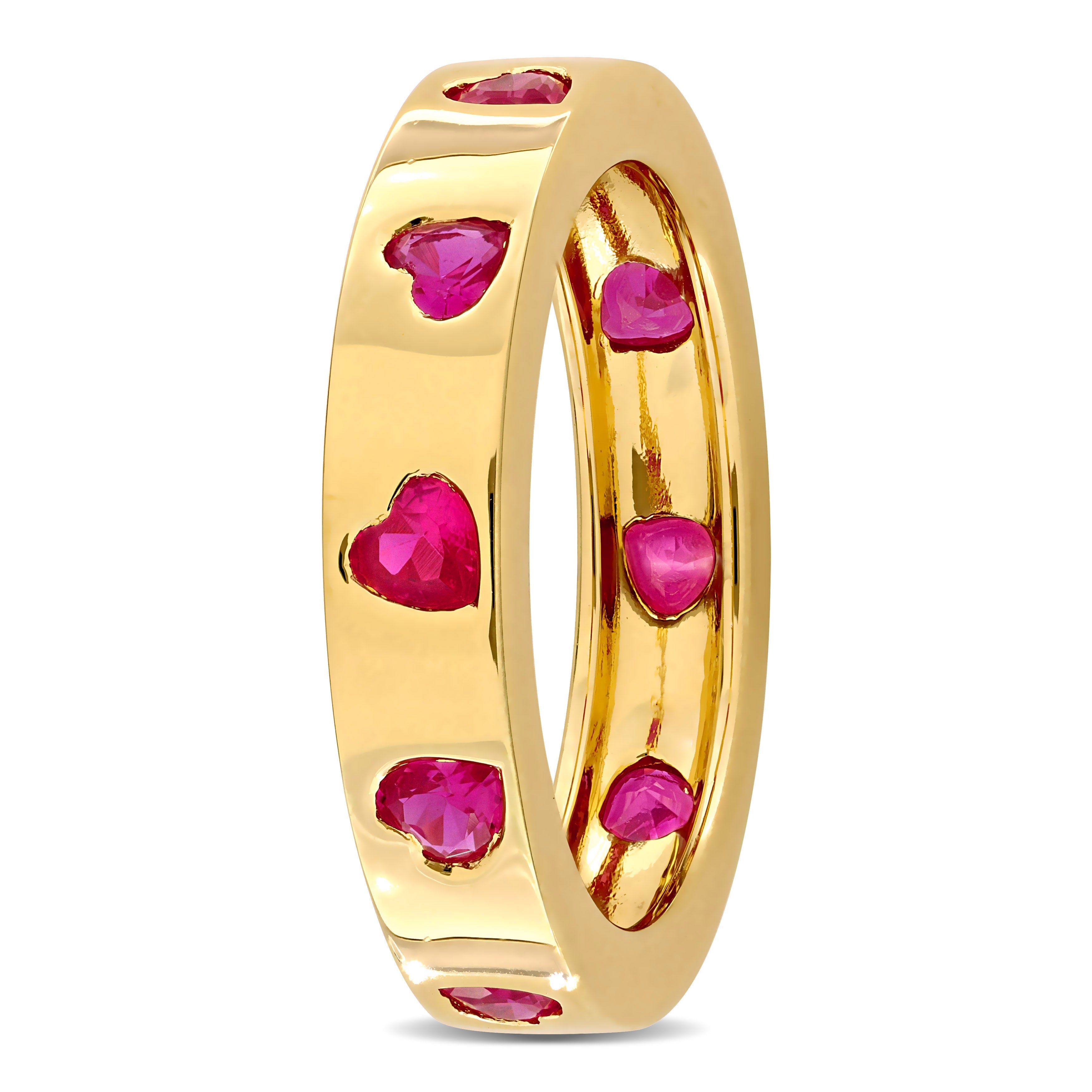 Lab-Created Gemstone Heart Eternity Ring in Yellow Plated Sterling Silver