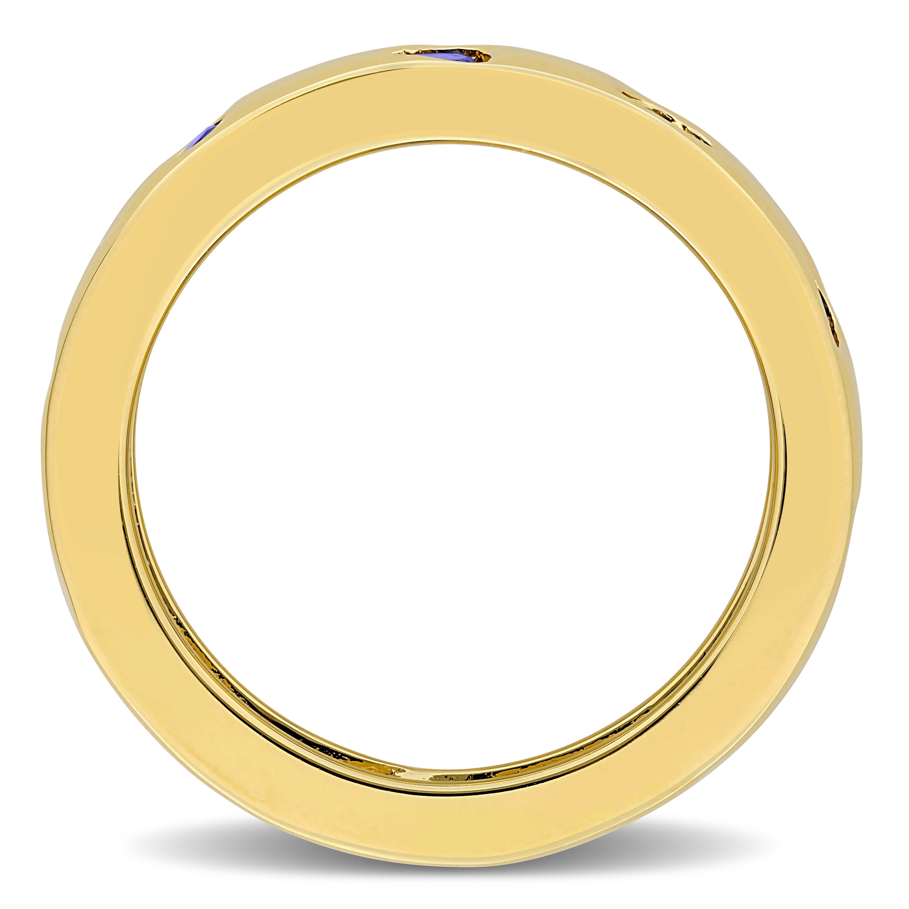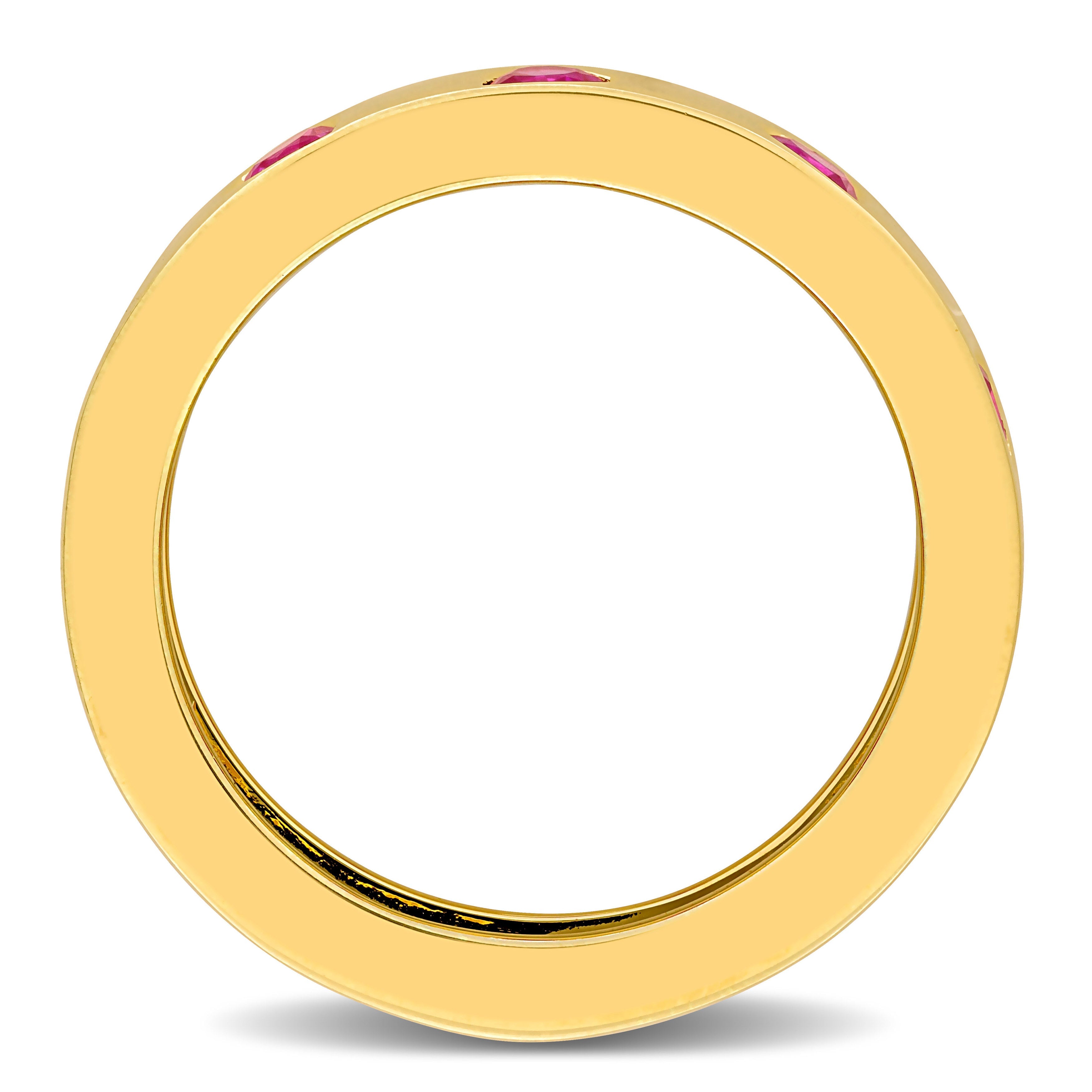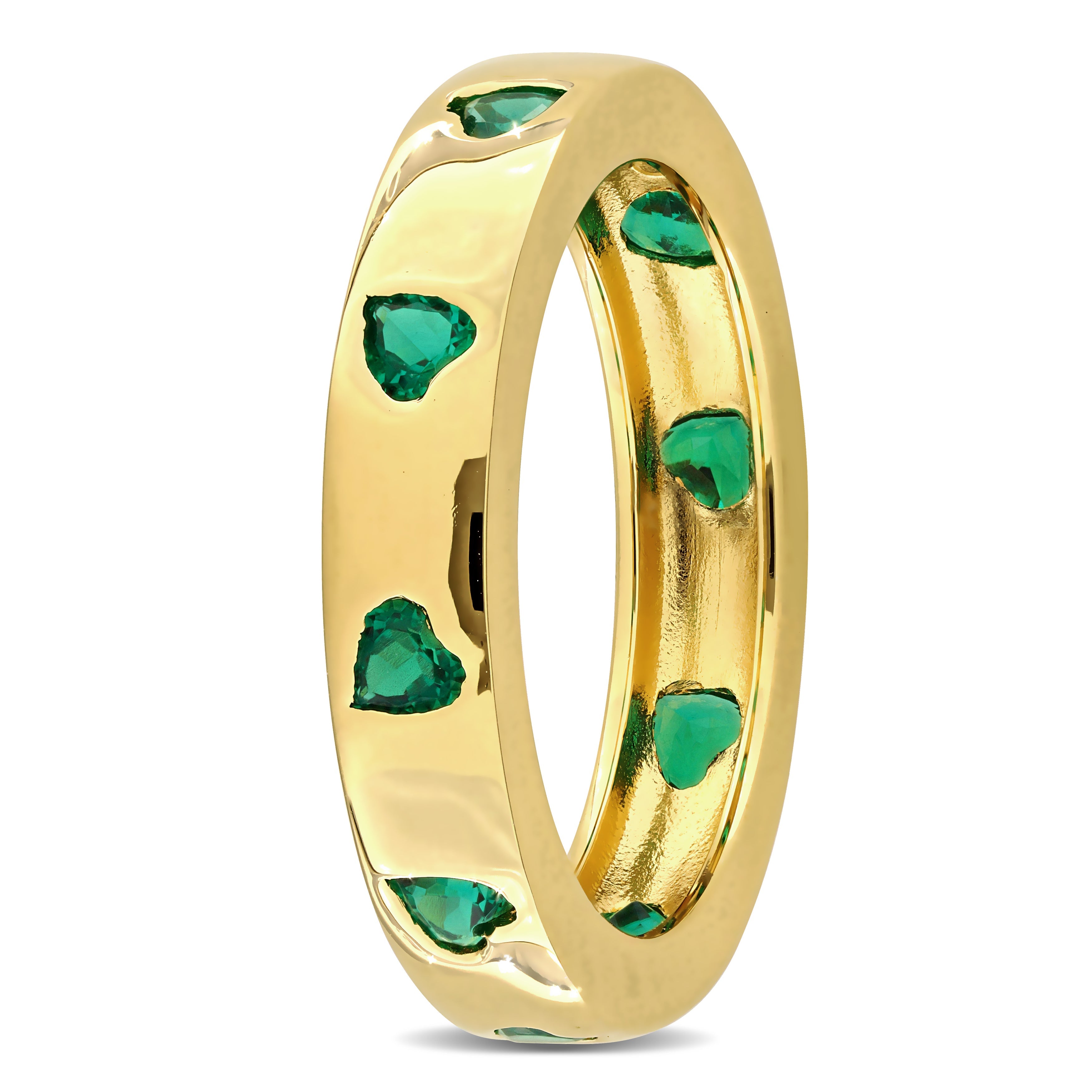 Lab-Created Gemstone Heart Eternity Ring in Yellow Plated Sterling Silver