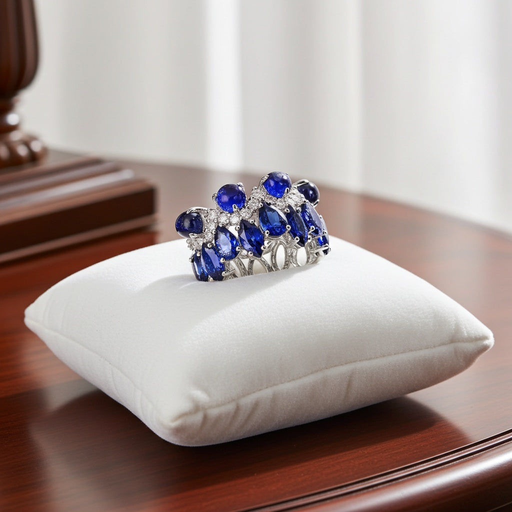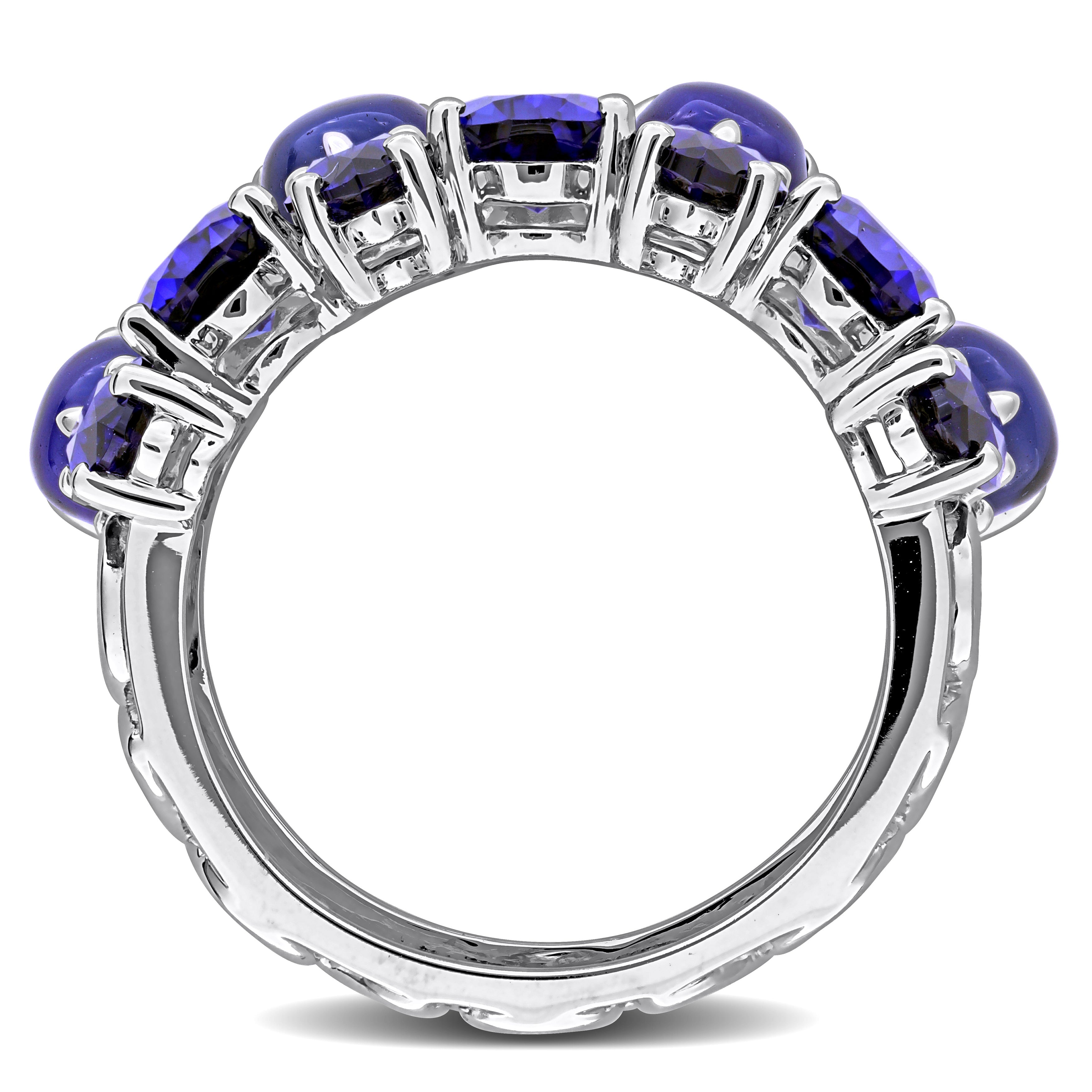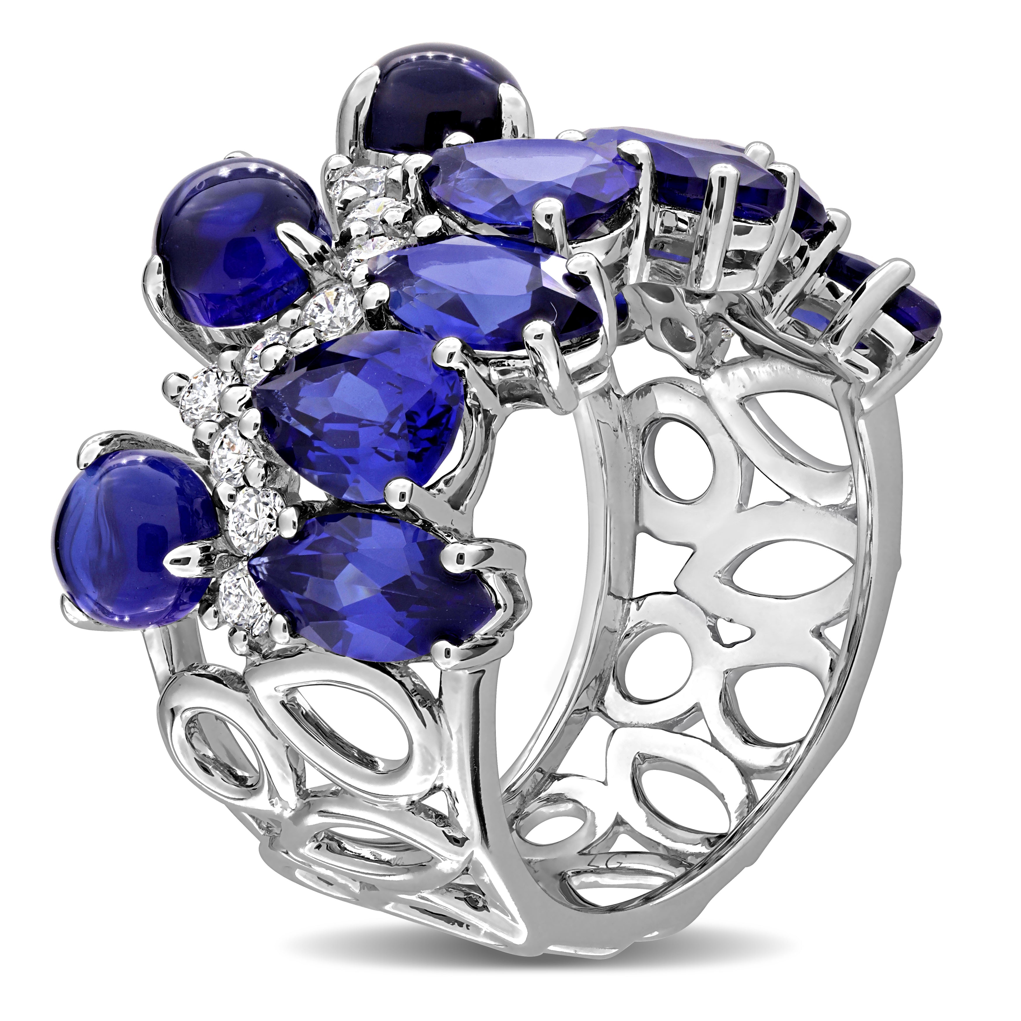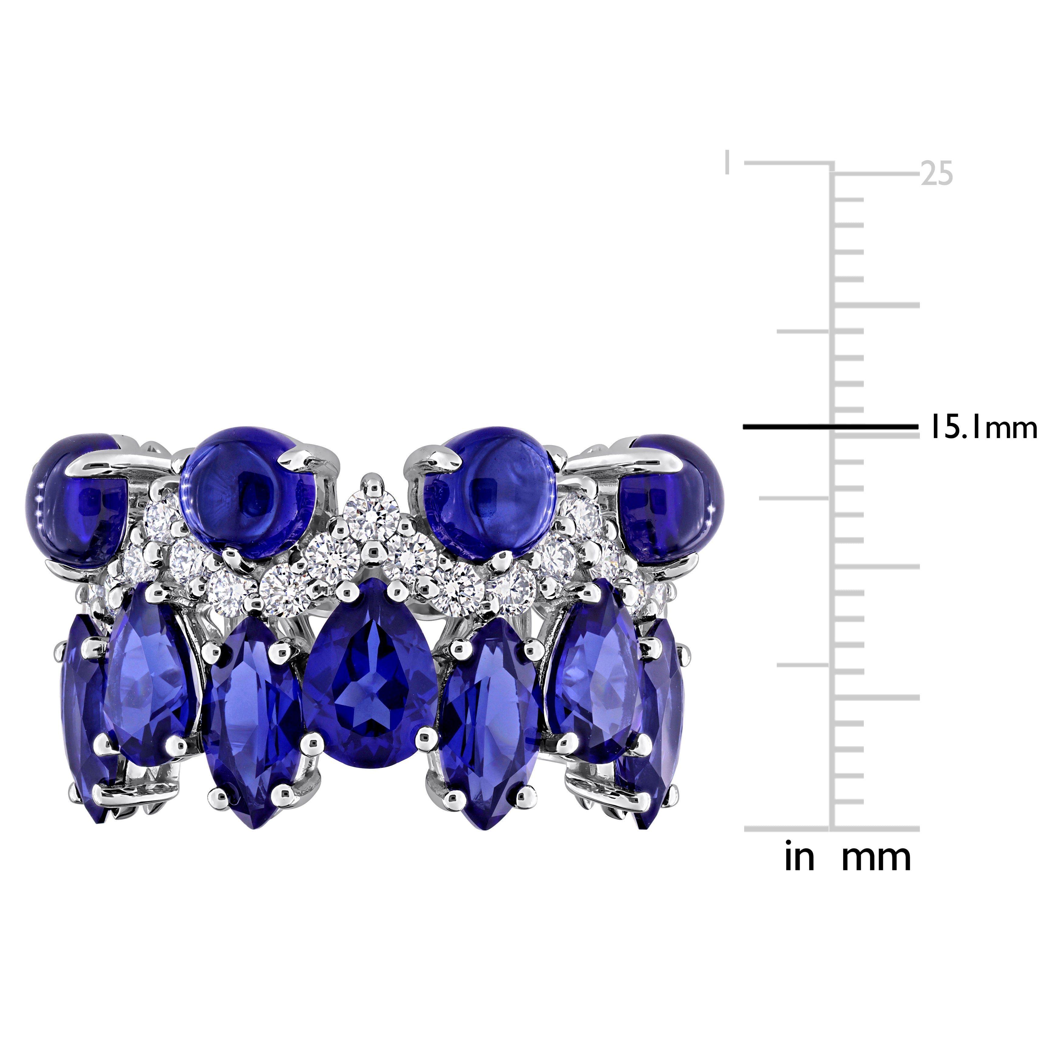 This beautiful ring is crafted in 14-karat white gold and showcases sparkling pear, marquise and round-cut lab-created sapphire gemstones with dazzling round-cut lab-grown diamonds in a stunning cluster eternity design. This ring is enhanced with a high polish finish and is an ideal choice for those who appreciate unique designs and sustainable luxury.