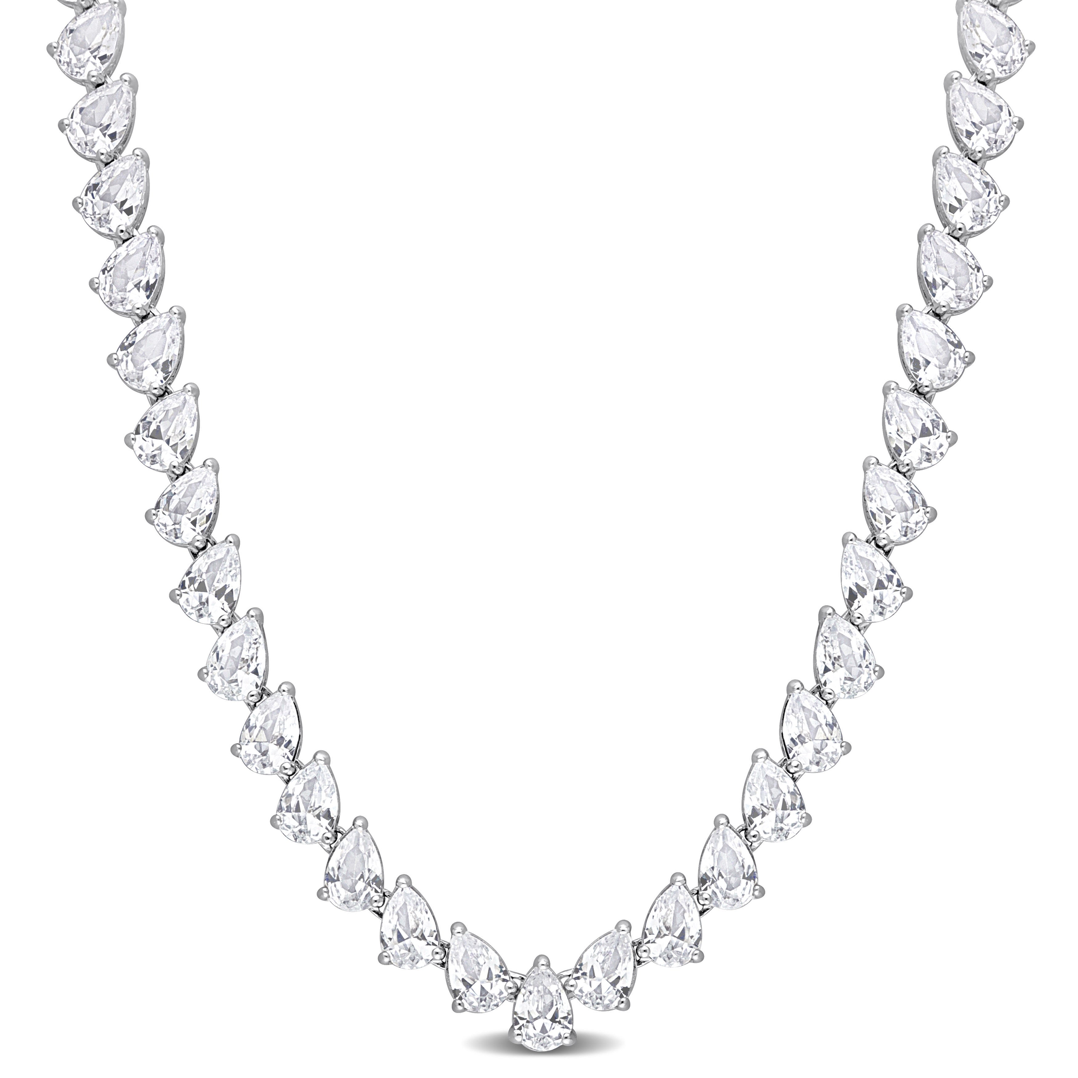 Lab-Created White Sapphire Teardrop Tennis Necklace in Sterling Silver
