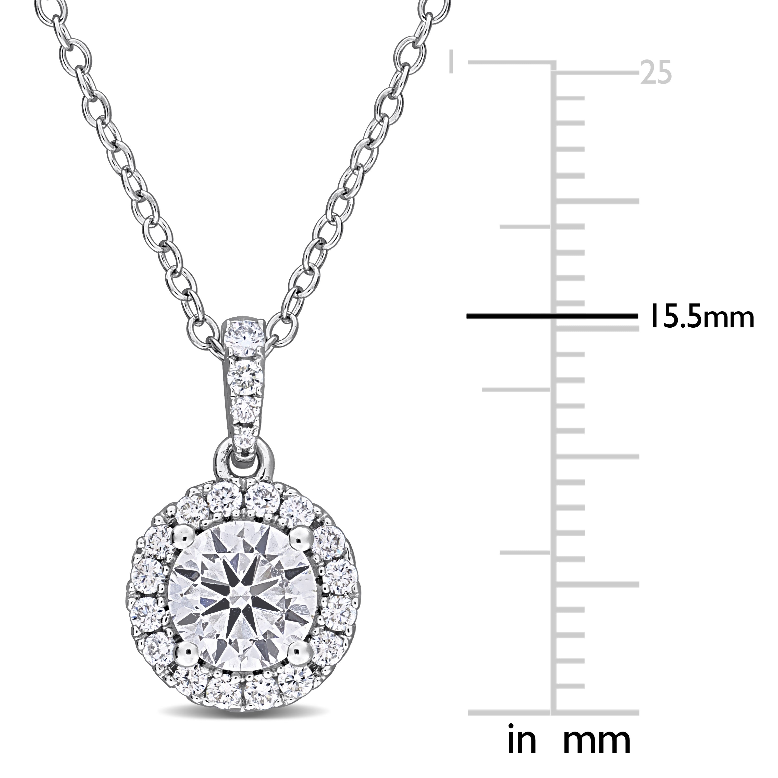 Lab-Grown Diamond Halo Pendant Necklace in Sterling Silver
