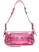 PINK LAMBSKIN METALLIC EFFECT CRINKLED FINISH STUD EMBELLISHMENT ADJUSTABLE SHOULDER STRAP FRONT ZIP-FASTENING POCKET REAR ZIP-FASTENING POCKET MAIN COMPARTMENT INTERNAL LOGO PATCH FULL LINING SILVER-TONE HARDWARE FRONT FLAP CLOSURE WITH MAGNETIC FASTENING