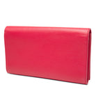 This clutch bag features a leather body, a front flap with magnetic snap closure, and an interior slip pocket.