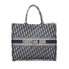 The Large Oblique Embroidered Canvas Book Tote from Dior is an iconic statement piece that combines luxury with everyday functionality. Featuring the signature Dior Oblique monogram pattern in navy and the bold "CHRISTIAN DIOR" embroidered band across the front, this spacious tote exudes timeless elegance.