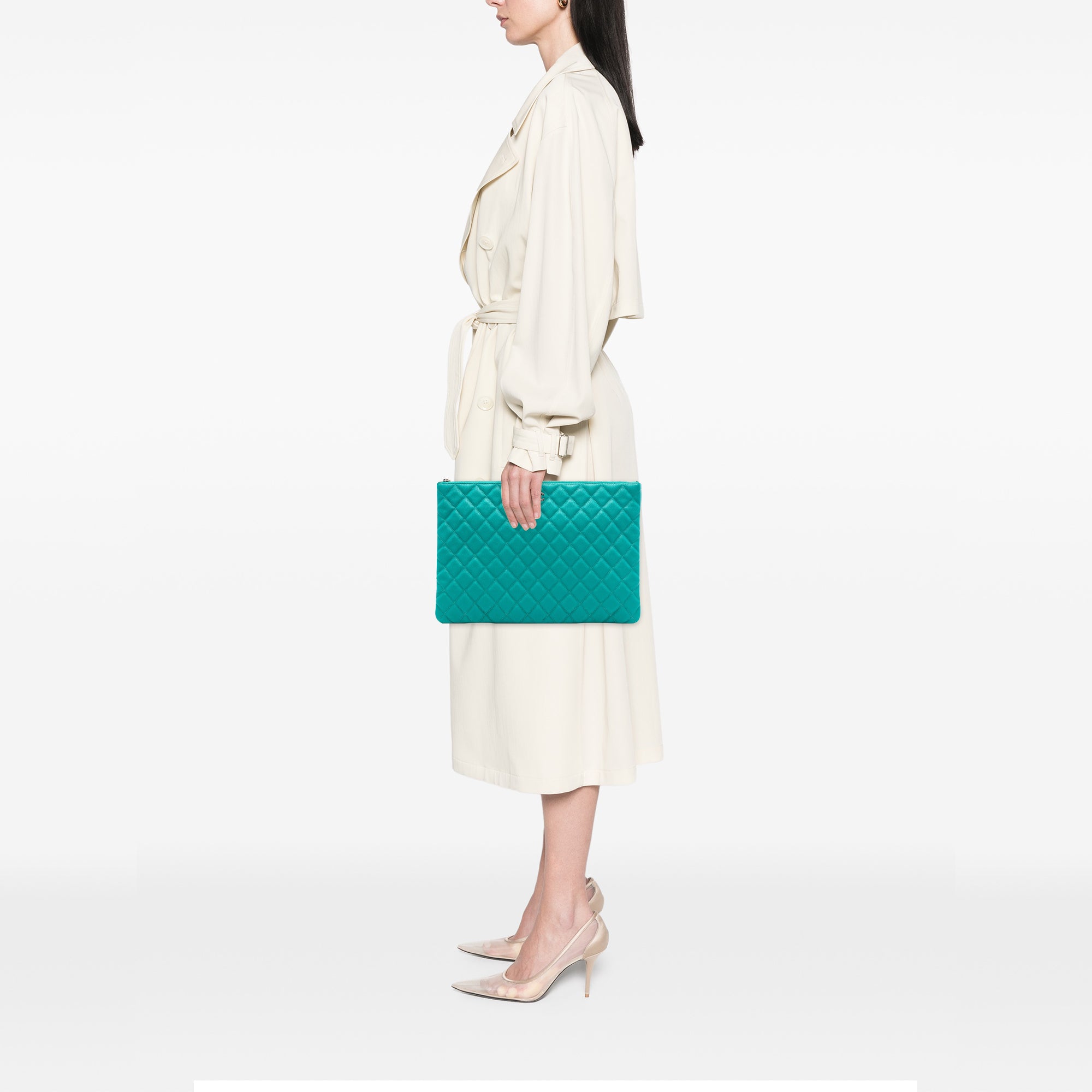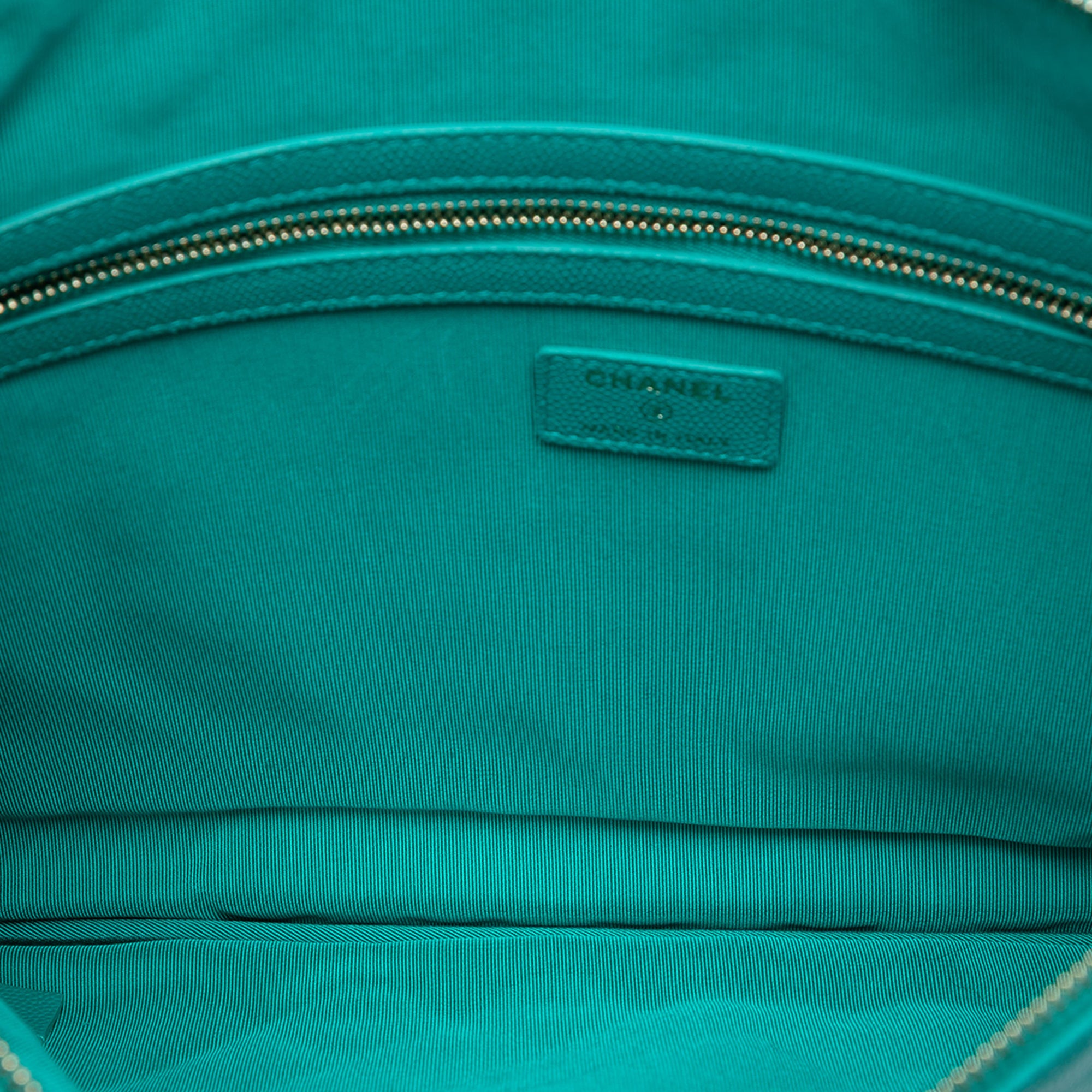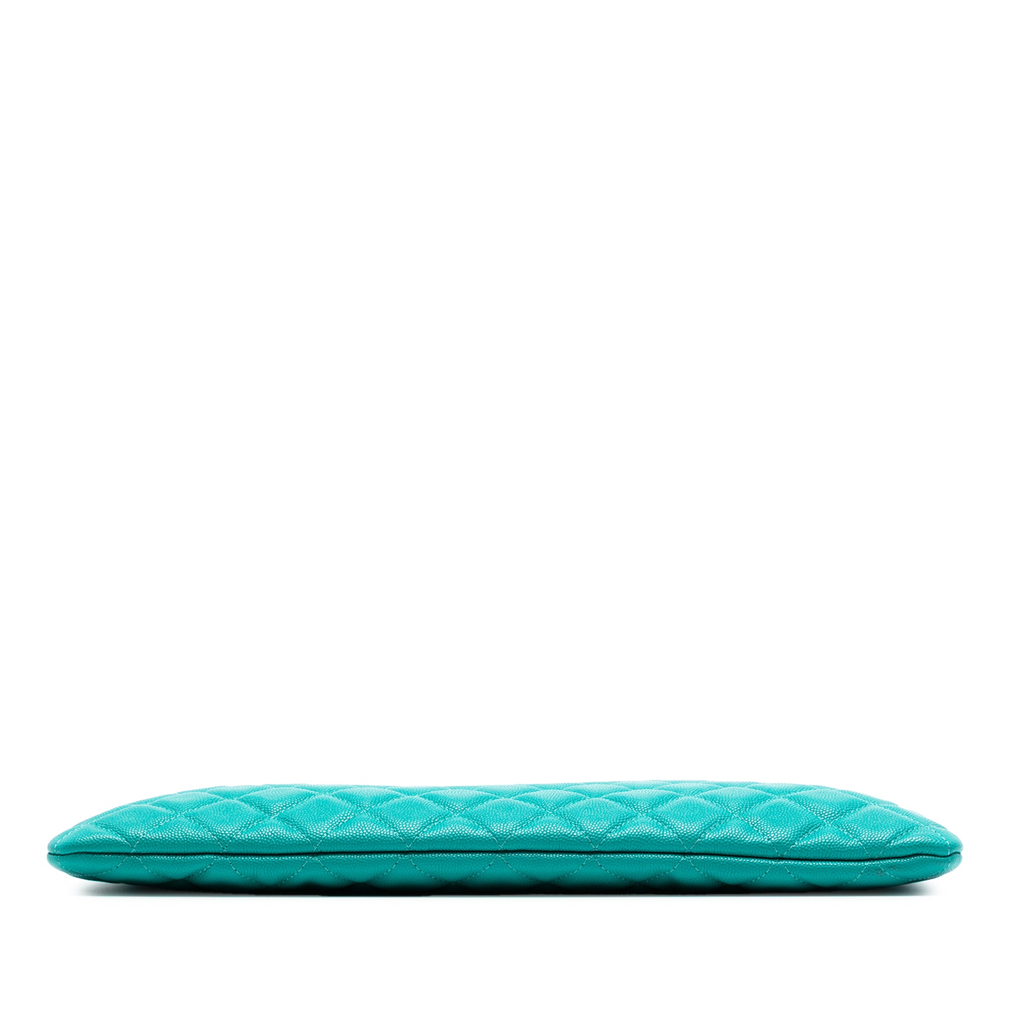 This stunning Chanel Large Quilted Caviar O Case Clutch is a timeless accessory that embodies luxury and sophistication. Crafted from the brand's signature quilted caviar leather in a beautiful turquoise hue, this clutch features a sleek top zip closure and a convenient interior zip pocket for your essentials.