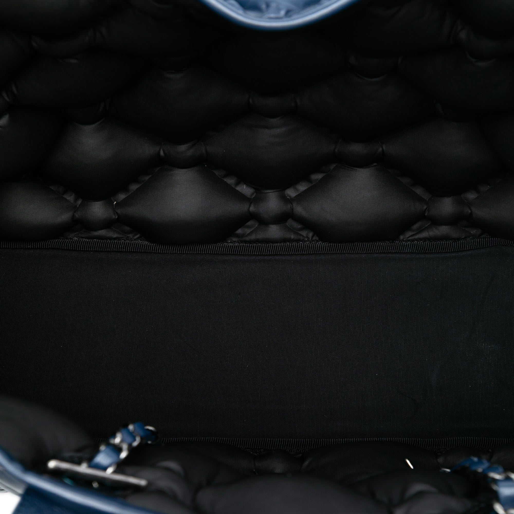 Elevate your everyday style with this stunning Large Quilted Leather Chesterfield Shopping Tote from Chanel. This luxurious tote features a beautifully quilted leather body in a rich navy hue, complemented by the iconic woven chain link shoulder straps with protective shoulder guards for comfortable carrying.