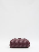 BAROLO-COLORED LEATHER CLUTCH WITH INTRECCIATO PATTERN. FEATURES REMOVABLE TUBULAR CHAIN, MAGNETIC FLAP CLOSURE WITH HIDDEN BUTTON, SINGLE COMPARTMENT. DUST BAG INCLUDED. ANY LEATHER IMPERFECTIONS ARE NOT CONSIDERED MANUFACTURING DEFECTS, BUT A CHARACTERISTIC OF THE MATERIAL.